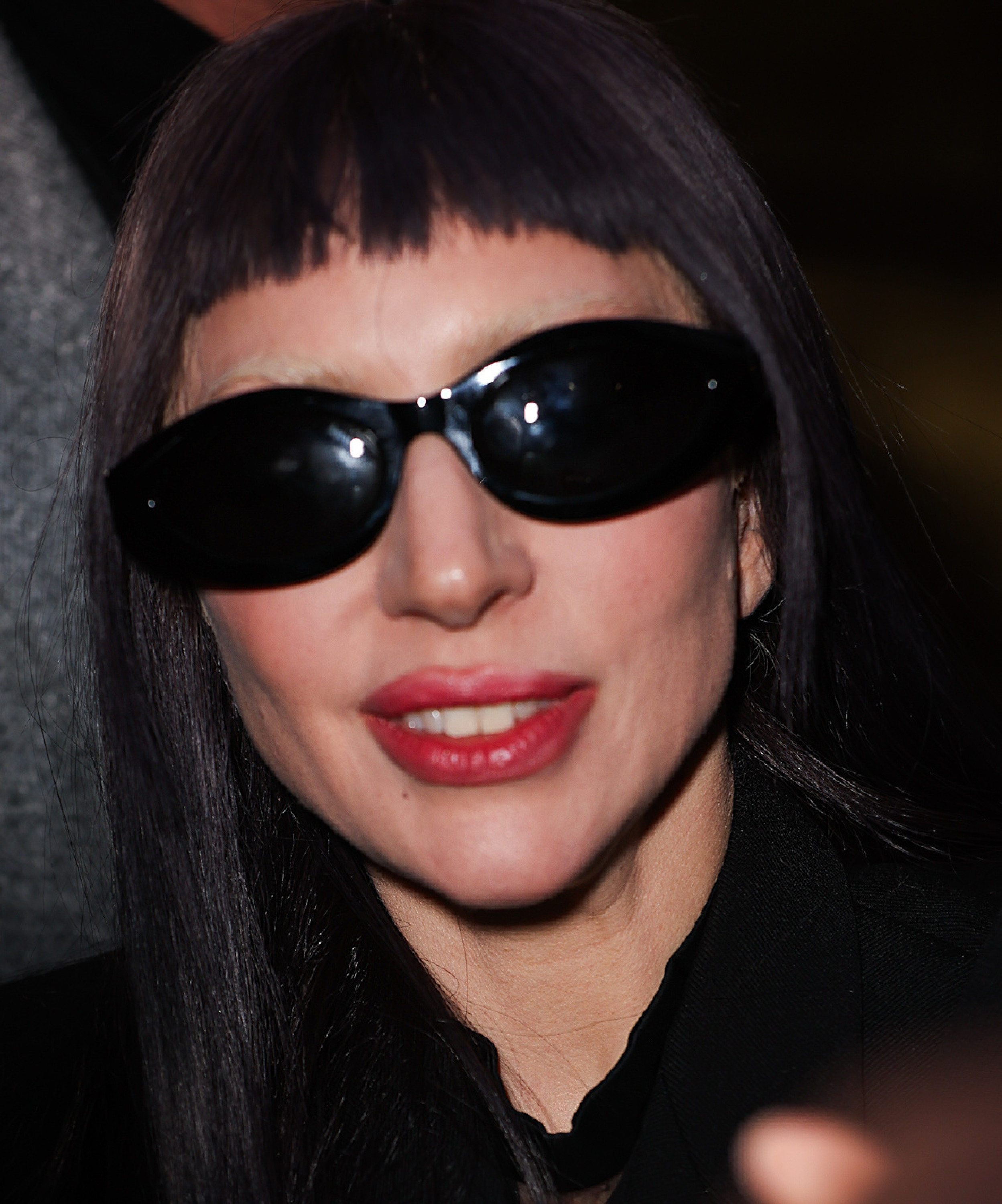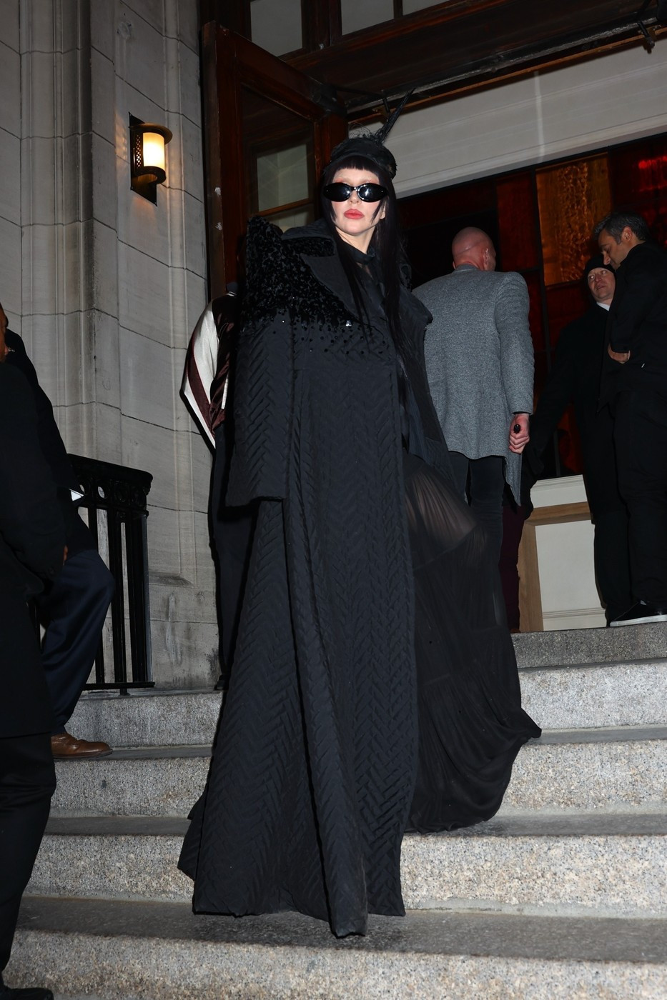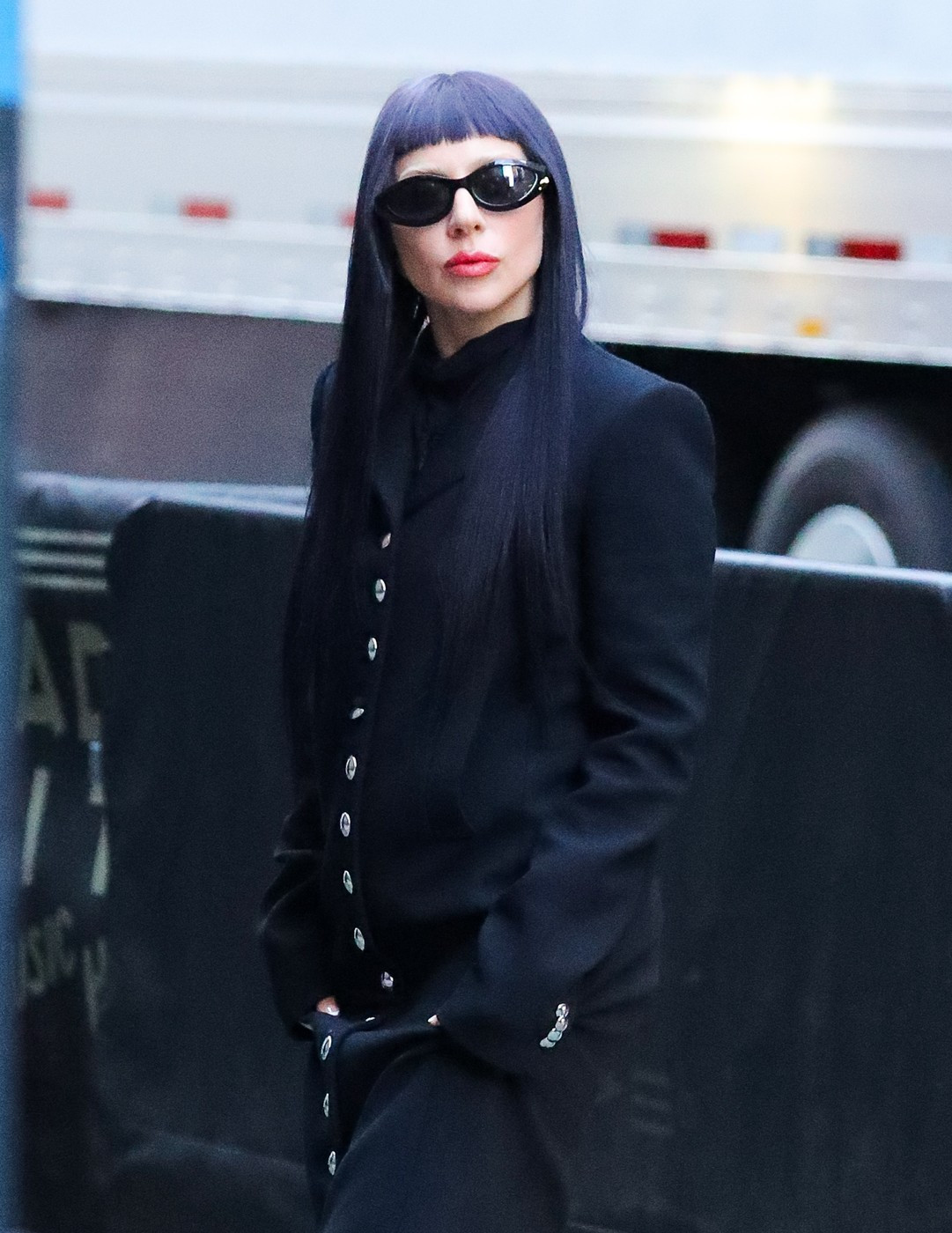 Și-a asortat look-ul cu noua culoare a părului, de un negru intens, care se potrivea perfect stilului ei goth-chic. Cântăreața a optat pentru o pereche de ochelari negri de soare ca și accesorii.
