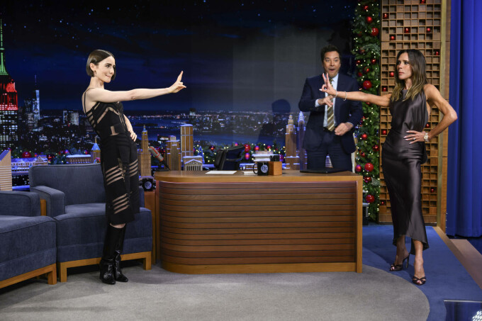 Lily Collins s-a emoționat imediat ce Victoria Beckham s-a așezat lângă ea. Fallon a surprins-o complet pe Collins aducând-o în platou pe Beckham, după ce actrița tocmai spusese că nu o întâlnise niciodată.