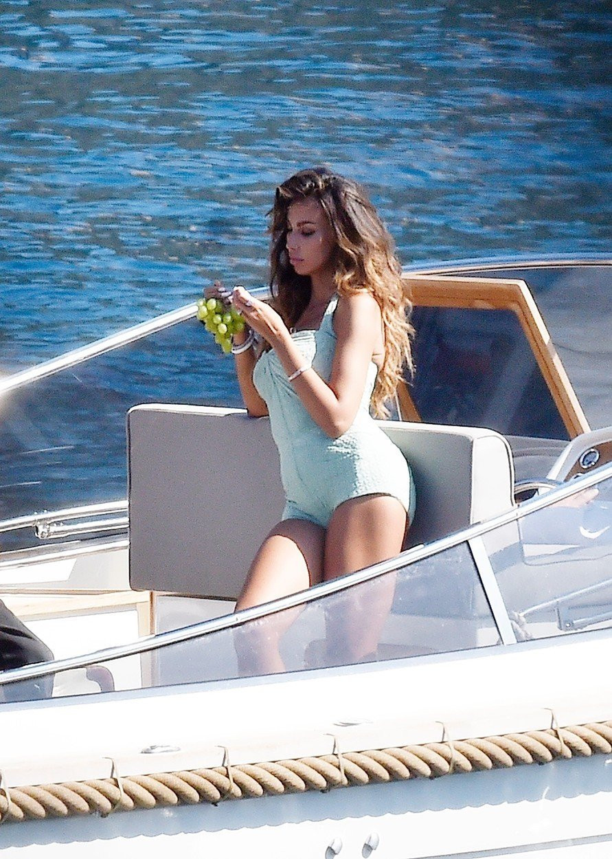 Ea a fost fotografiată pe iaht, unde a făcut plajă alături de iubit. În alte imagini, vedeta apare în mai multe ținute simple, elegante.