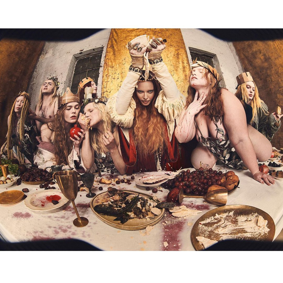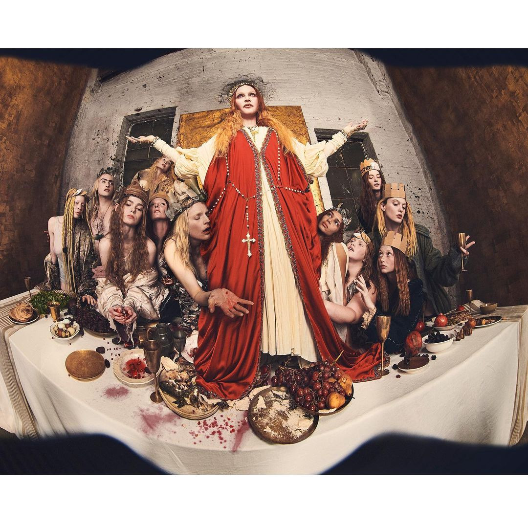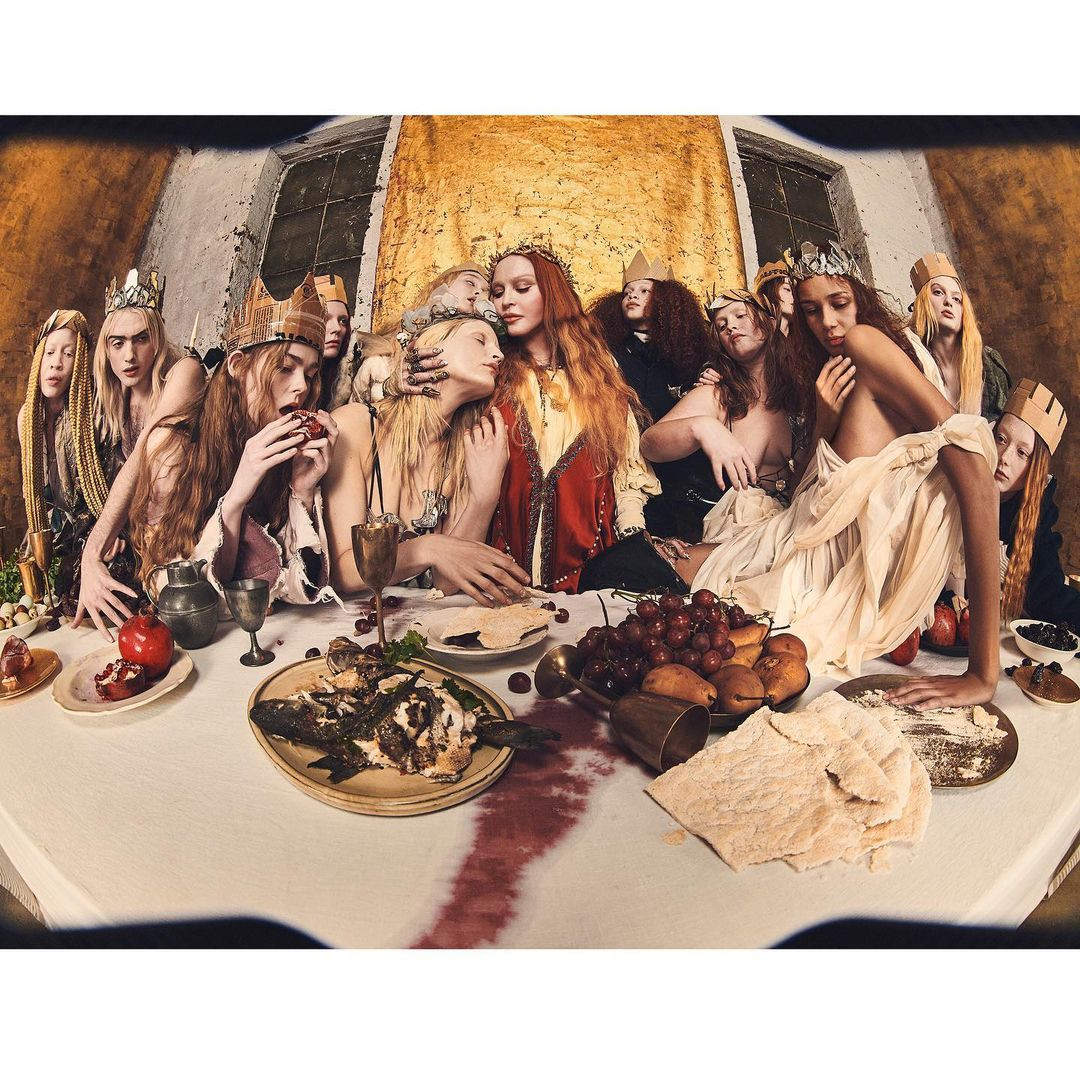 Într-una dintre fotografii, Madonna apare drept Fecioara Maria cu lacrimi pe față. Într-o altă imagine, artista a recreat, alături de alte femei, Cina cea de taină, întruchipându-l pe Iisus.