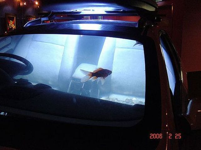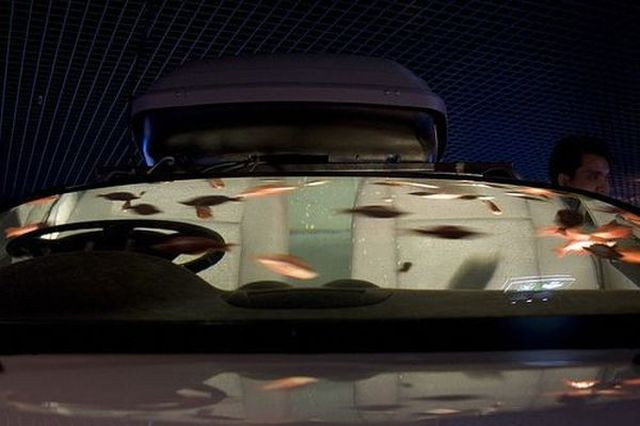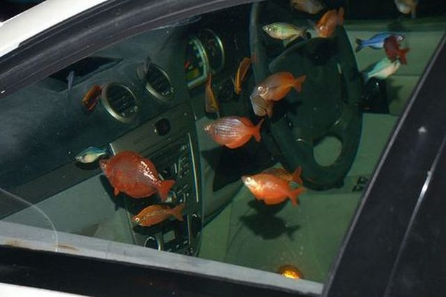 Daca nu ai ce face cu masina, daca nici programul Rabla nu iti surade, atunci solutia - inedita, ce-i drept - este sa-ti muti acvariul cu pesti in interiorul automobilului.