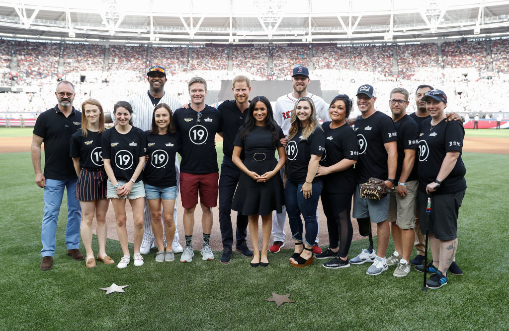 Meghan Markle și prințul Harry au fost surprinși, duminică, ținându-se de mână și uitându-se afectuos unul la celălalt, în timpul unui meci de baseball la care ducii de Sussex au participat.