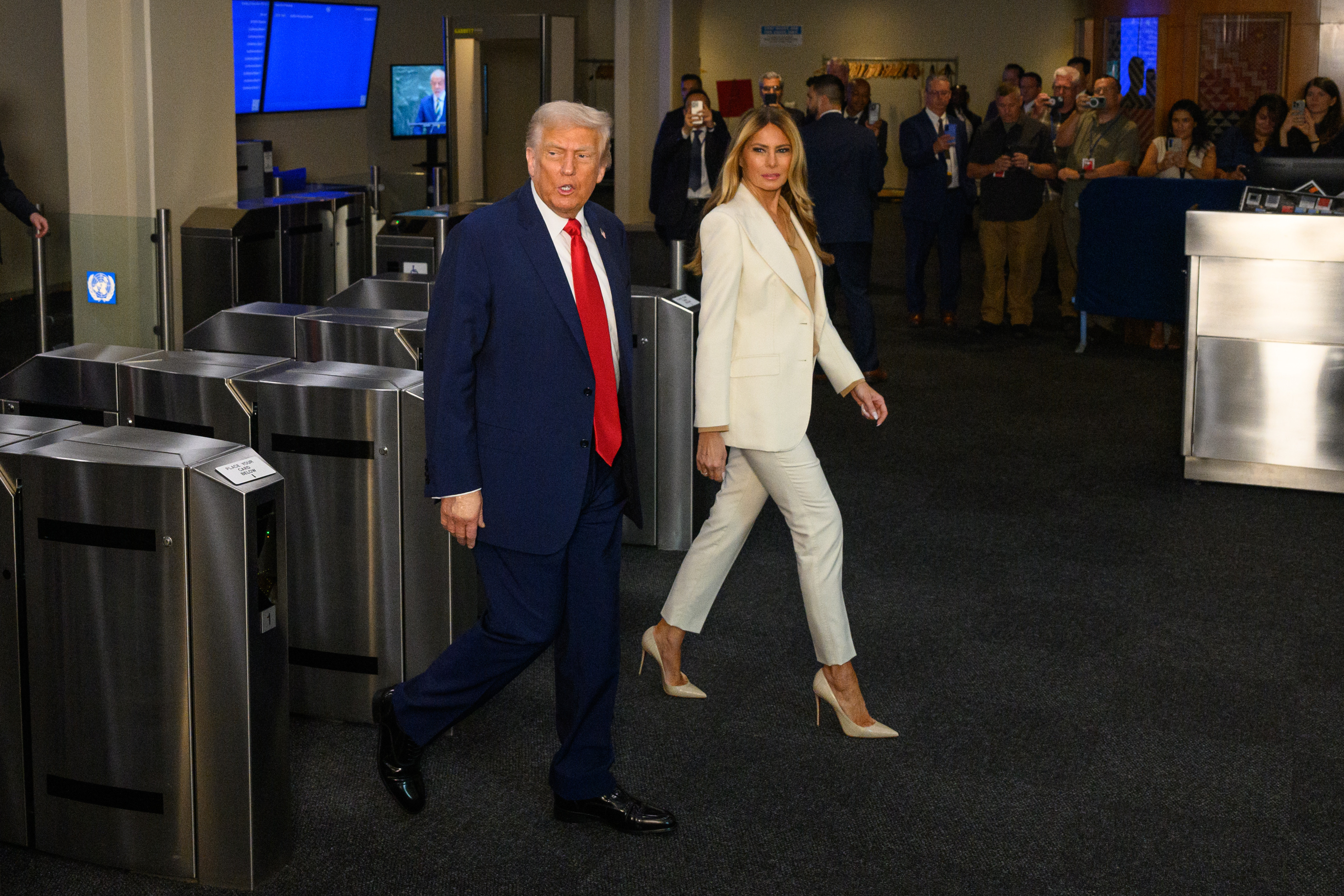 Prima doamnă nu l-a însoțit pe președinte în majoritatea weekendurilor petrecute până acum la reședința și clubul lor din Palm Beach, deși tatăl ei, Viktor Knavs, a făcut-o ocazional. Consilierul comercial al Casei Albe, Peter Navarro, care și-a petrecut o parte din tinerețe în Palm Beaches, directorul de comunicare Steven Cheung și adjunctul procurorului general Todd Blanche au zburat, de asemenea, la bordul Air Force One, care a aterizat pe Aeroportul Internațional Palm Beach la ora 20:22.