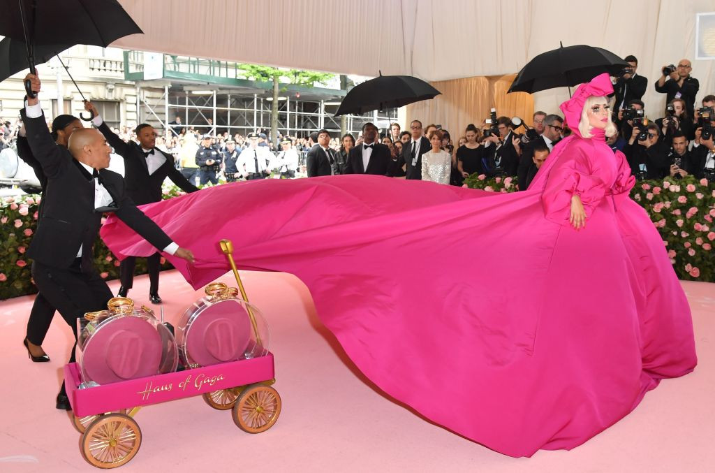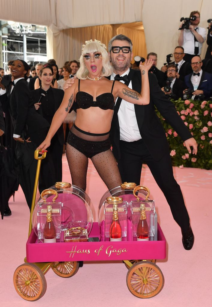 Lady Gaga a petrecut mai multe minute pe covorul roşu al galei, într-un fel de performance. Ea a schimbat patru ţinute Brandon Maxwell, având mai multe ajutoare, conduse chiar de designer. Strat după strat, ea a sfârşit prin a rămâne în lenjerie intimă, dar fără să renunţe la platformele imense.