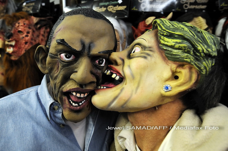 Mastile care infatiseaza personaje politice rivalizeaza in 2009 cu costume de zombie si de vampiri, inspirate de filmul "Twilight".