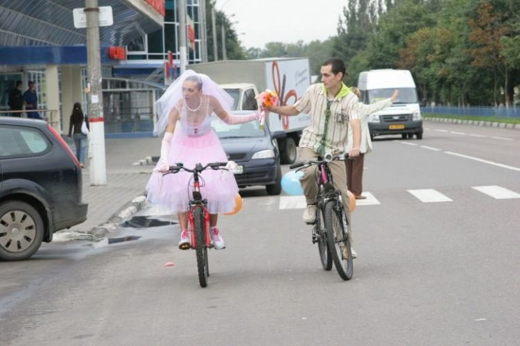 Mirese pe bicicleta, cu trompeta si in sanii goi! De la NUNTA adunate