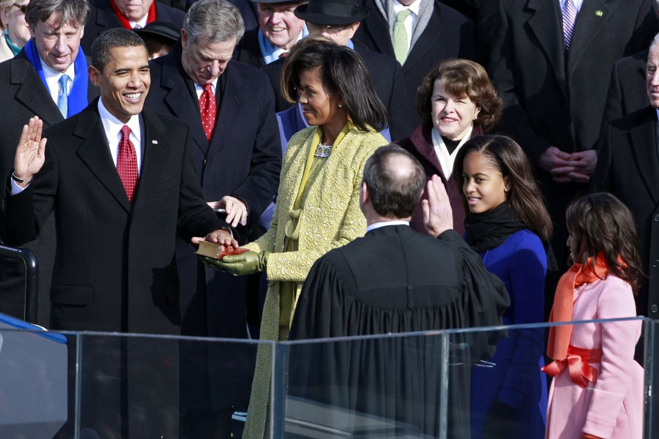 Multi au fost cei care le-au analizat si pe fiicele lui Obama. Malia, care are 10 ani, a purtat un palton evazat, albastru, cu o funda in talie, iar Sasha, fiica de 7 ani, a avut o hainuta roz, cu esarfa portocalie si cordon de satin. De sub palton se zarea o rochita de culoare corai.