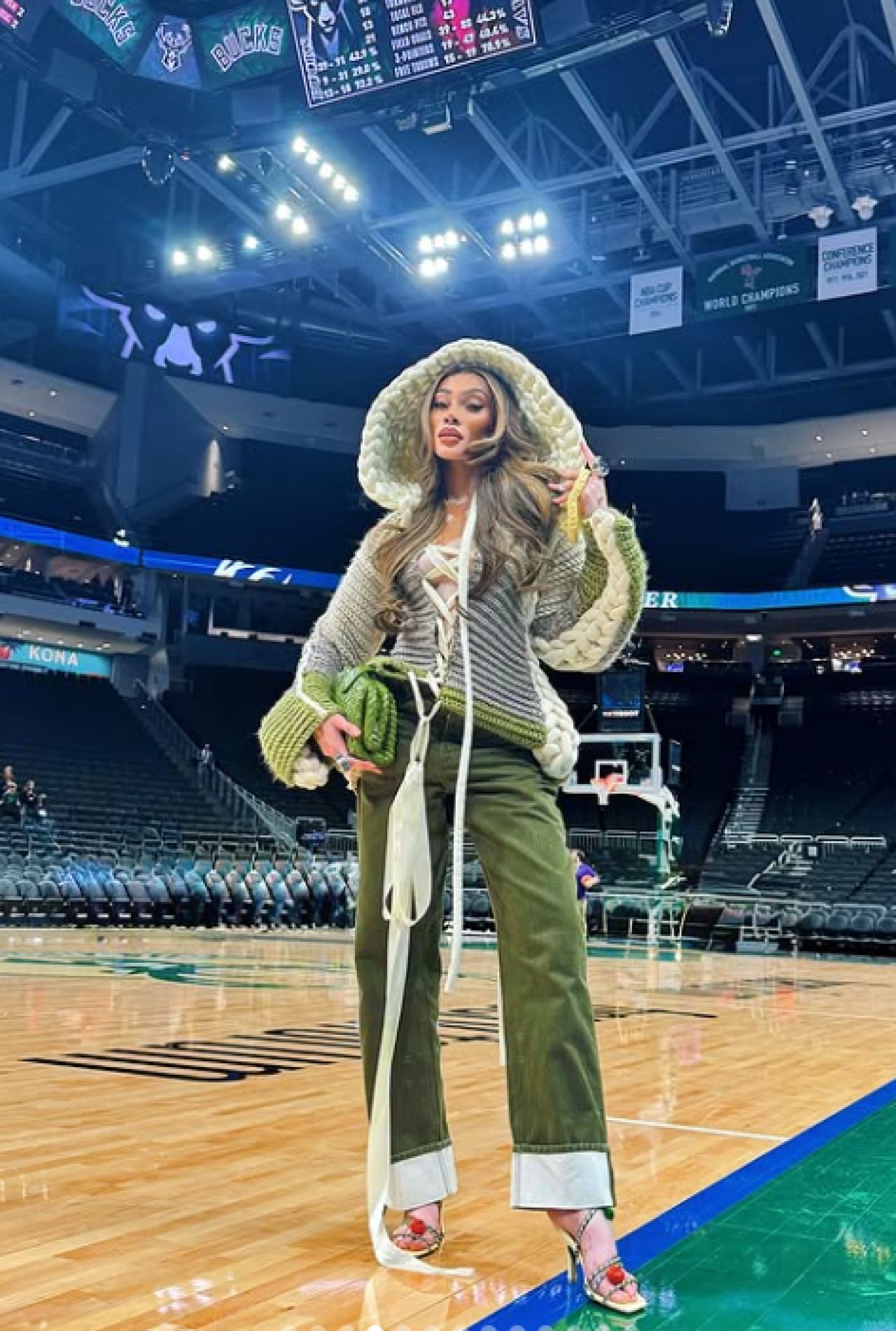 Outfit-ul a fost accesorizat cu bijuterii aurii, oferindu-i un aer sofisticat și elegant. Deși alegerea vestimentară a fost una lejeră, modelul a reușit să capteze atenția tuturor.