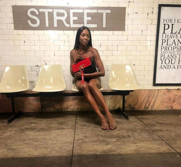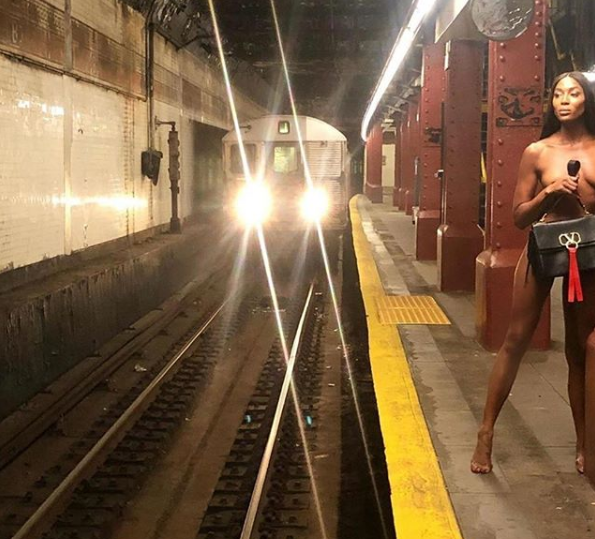 Naomi Campbell, ședință foto nud la metroul din New York. GALERIE FOTO
