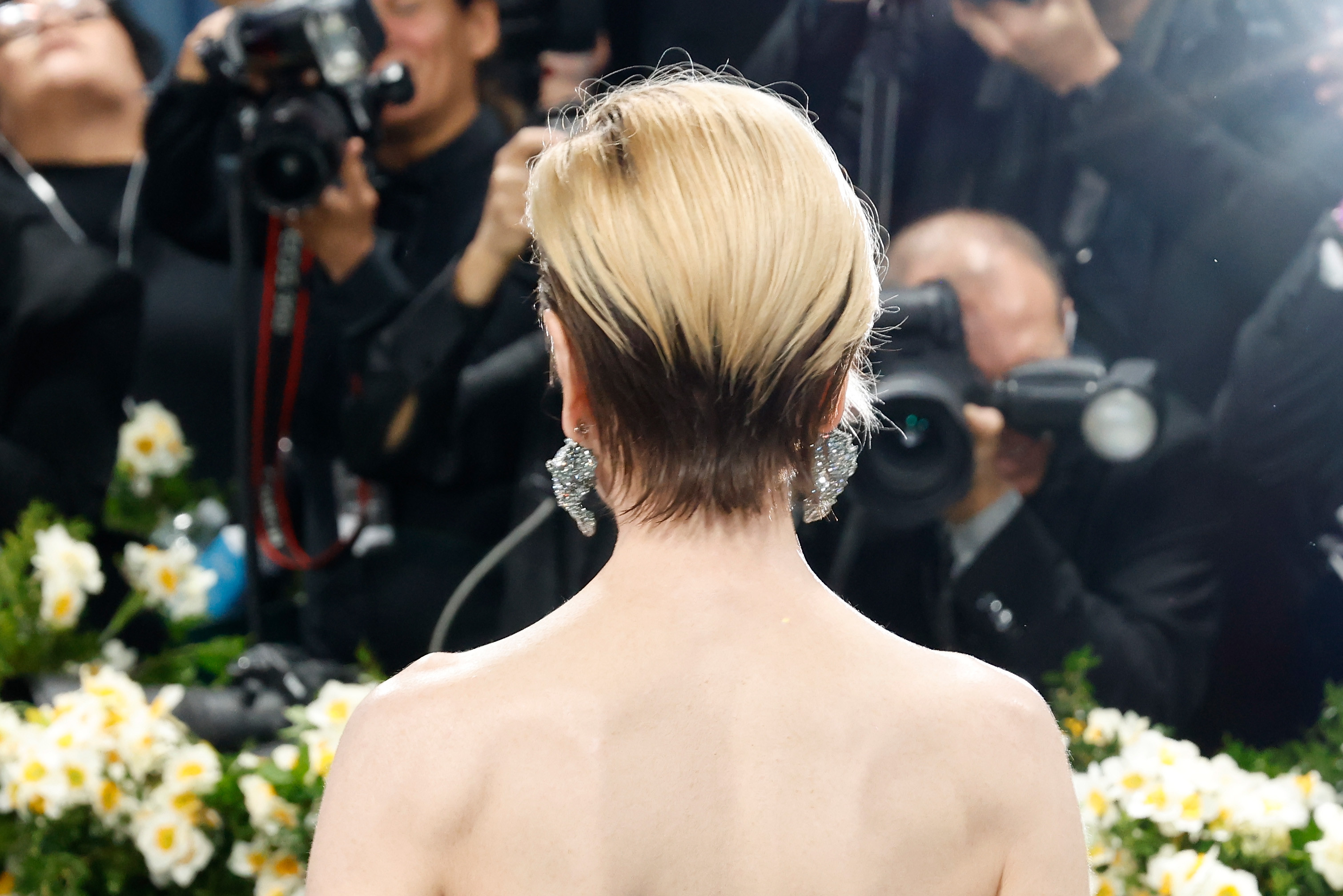 Hair-stylistul ei, Adir Abergel, unul dintre cei mai solicitați stiliști de la Hollywood, a explicat pe Instagram că s-a inspirat din tema galei din acest an, „Superfine: Tailoring Black Style”, optând pentru „o tunsoare scurtă, bine conturată”.