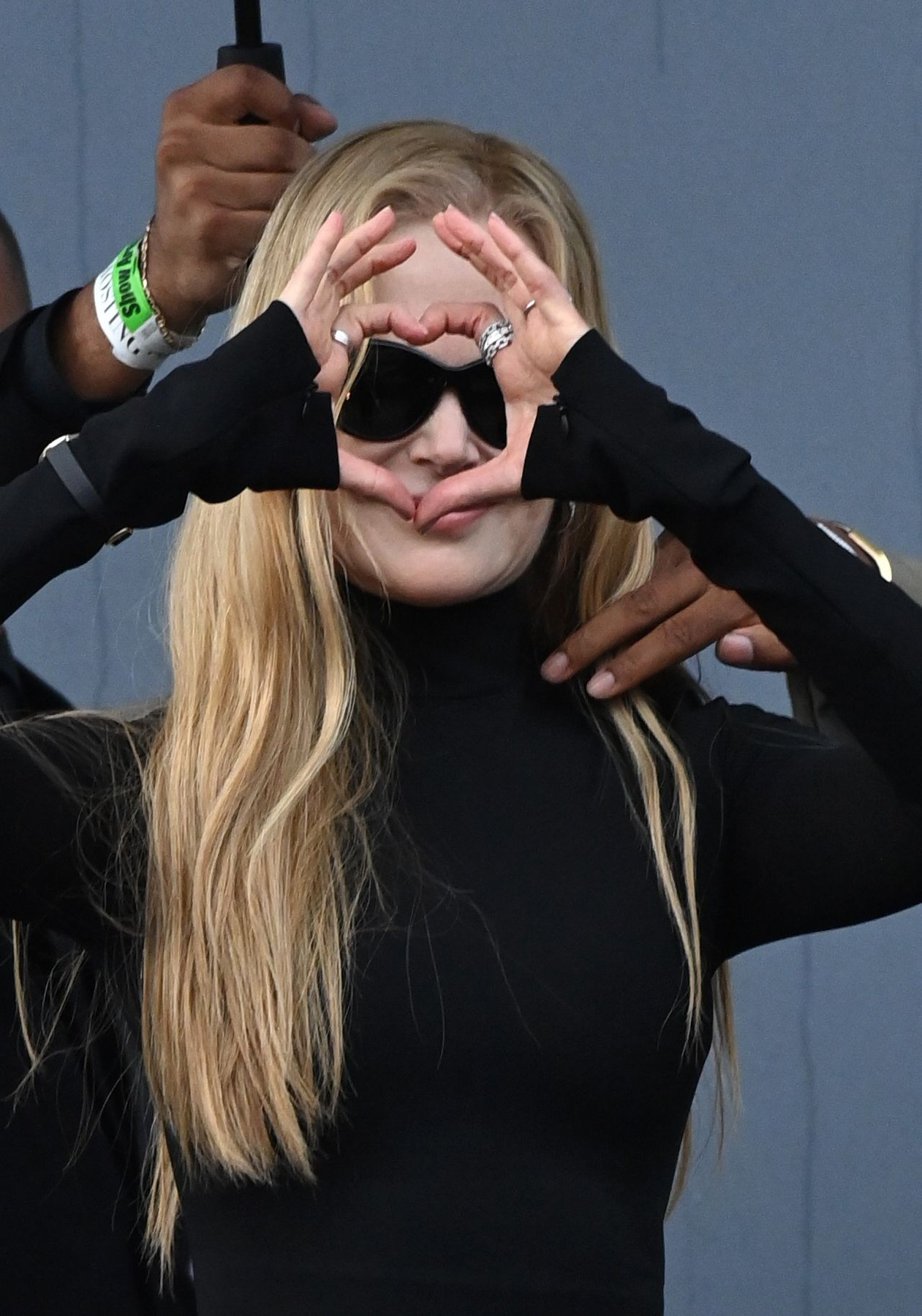 Vedeta din „Perfect Couple” a stat în primul rând la spectacolul exclusivist și a purtat ochelari de soare închisi la culoare, dar și haine negre, pe tot parcursul evenimentului.