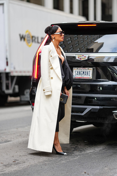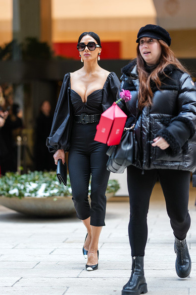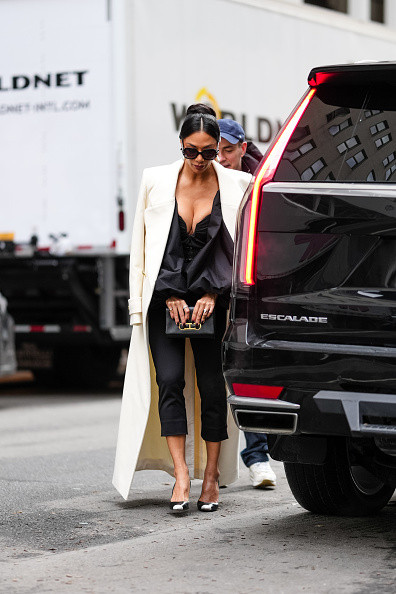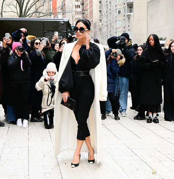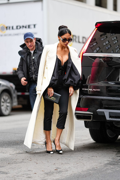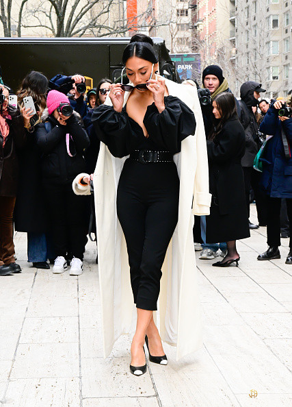 Nicole a accesorizat ținuta îndrăzneață cu o curea elegantă cu strasuri și un sacou negru. Purtând un palton alb pe umeri, fosta cântăreață și-a adăugat câțiva centimetri în plus cu o pereche de stilettos negri cu vârf alb. La intrare, a făcut senzație purtând o pereche de ochelari de soare, pe care i-a dat jos ulterior pentru a-și arăta machiajul impecabil.