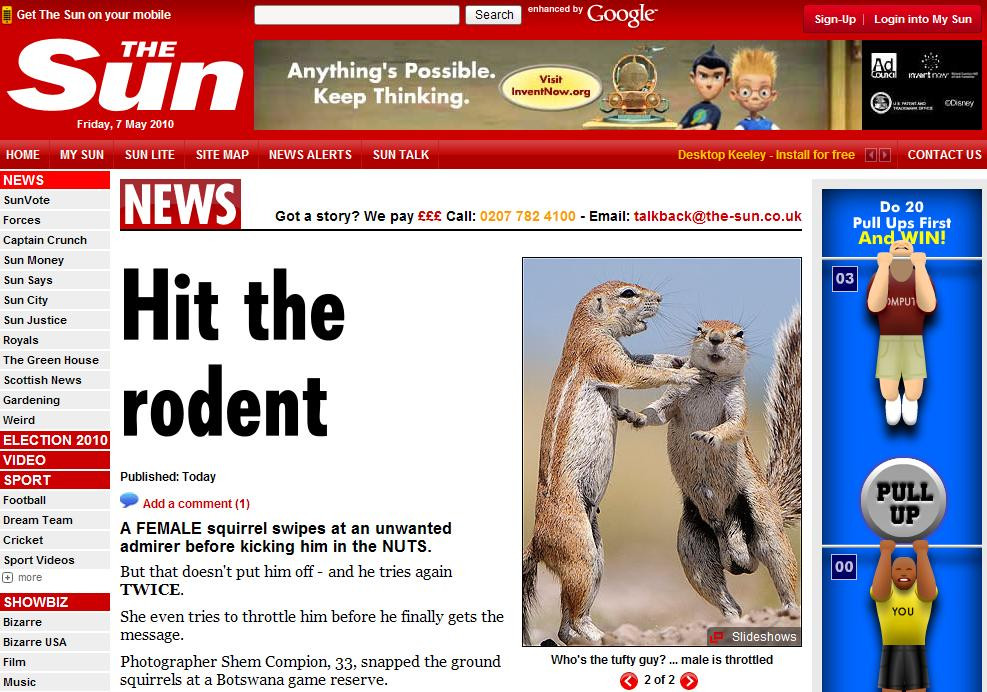 Veverita l-a lovit. El nu s-a dat batut. A mai incercat. De doua ori, chiar. Iesita din minti, femela l-a lovit in testicule si a sfarsit prin a-l strange de gat, inainte ca infocatul admirator sa inteleaga ca nu e loc de romantism.