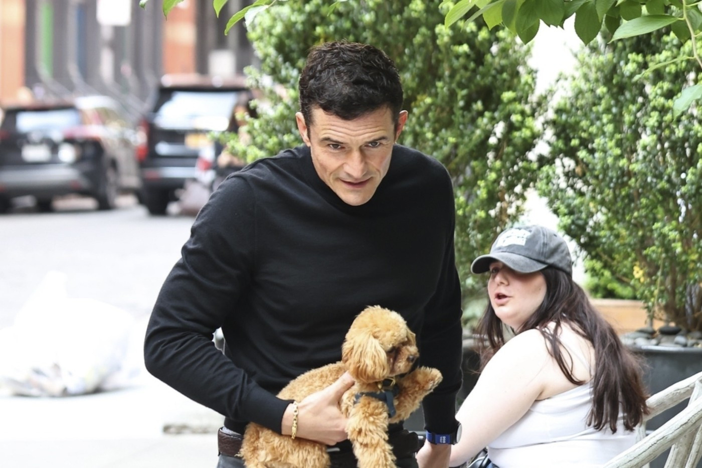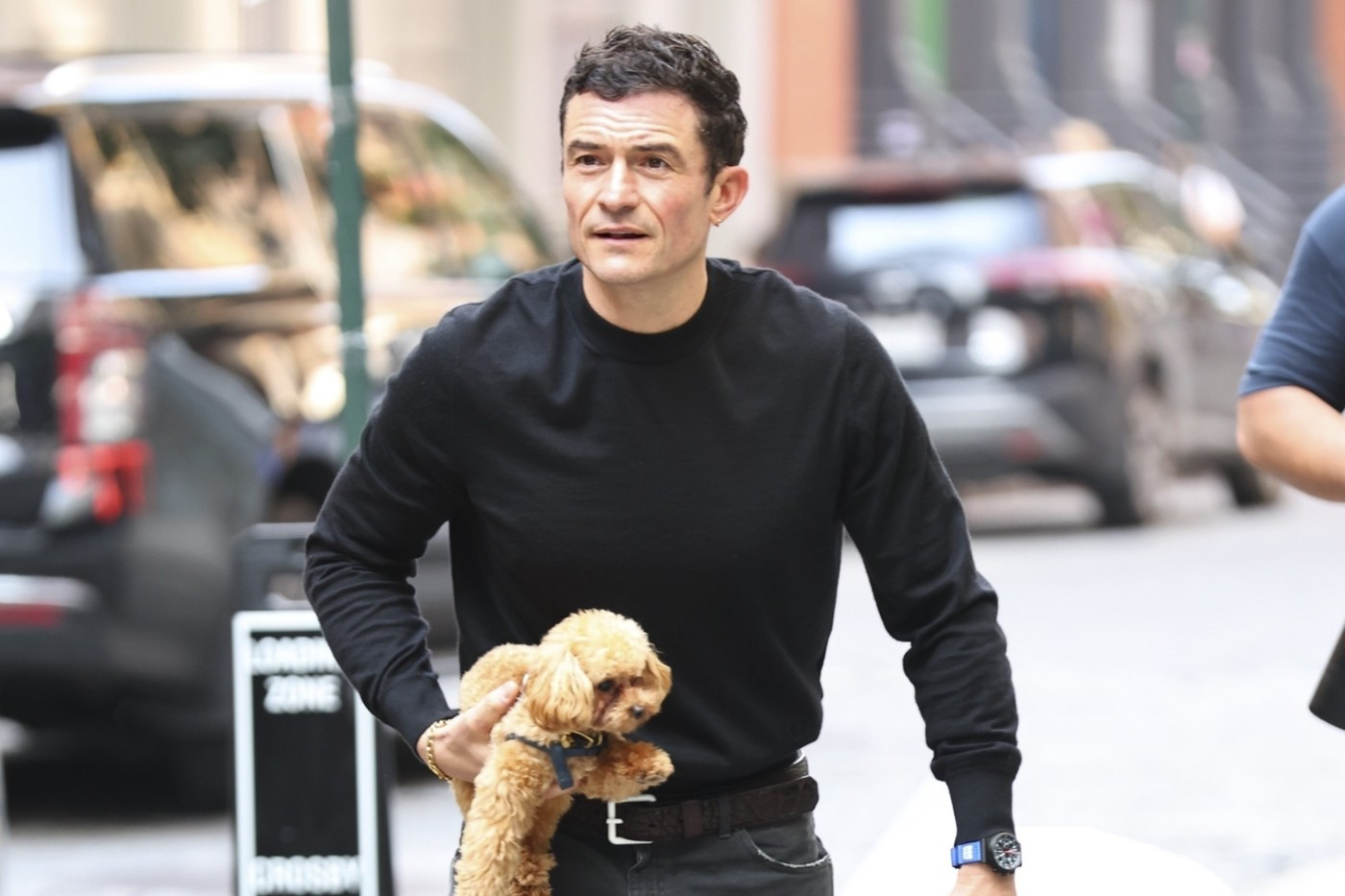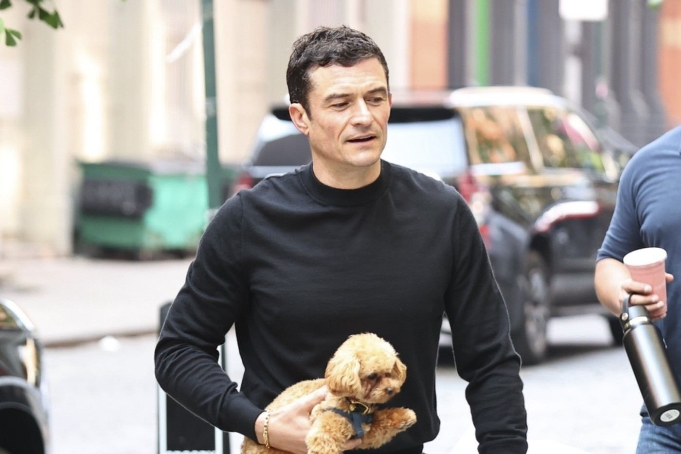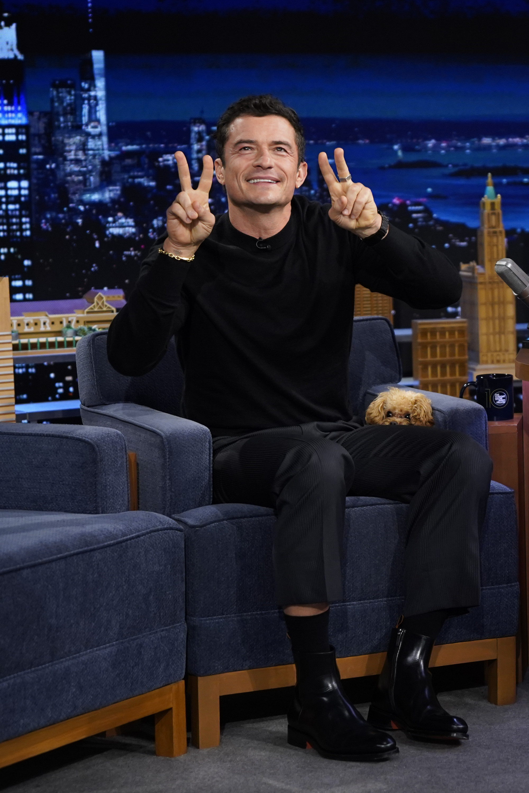 Bloom a dezvăluit că animăluțul său de companie are de doar 10 luni. „Mi s-a spus că am nevoie de un câine care să fie aproape inexistent,” a explicat el, făcând un gest către Biggie Smalls. „Călătoresc foarte mult, dar îmi plac câinii.”