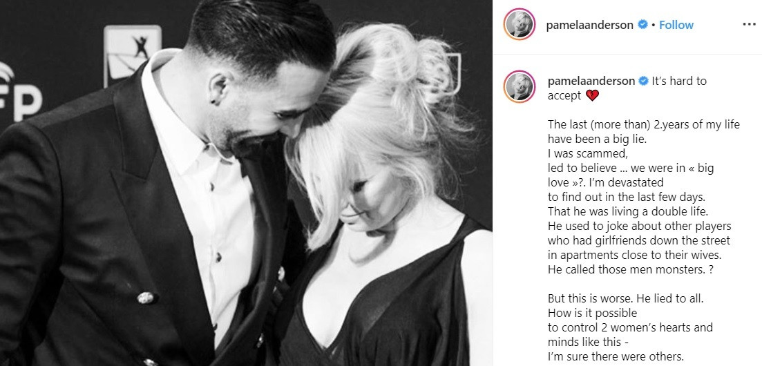Pamela Anderson s-a despărțit de iubitul său, fotbalistul Adil Rami, printr-o postare pe Instagram în care îl numește „monstru”.