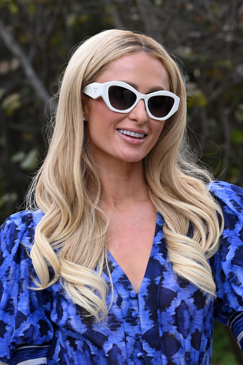 Paris a purtat o rochie midi albastră cu imprimeu care avea mâneci bufante, potrivit Daily Mail.