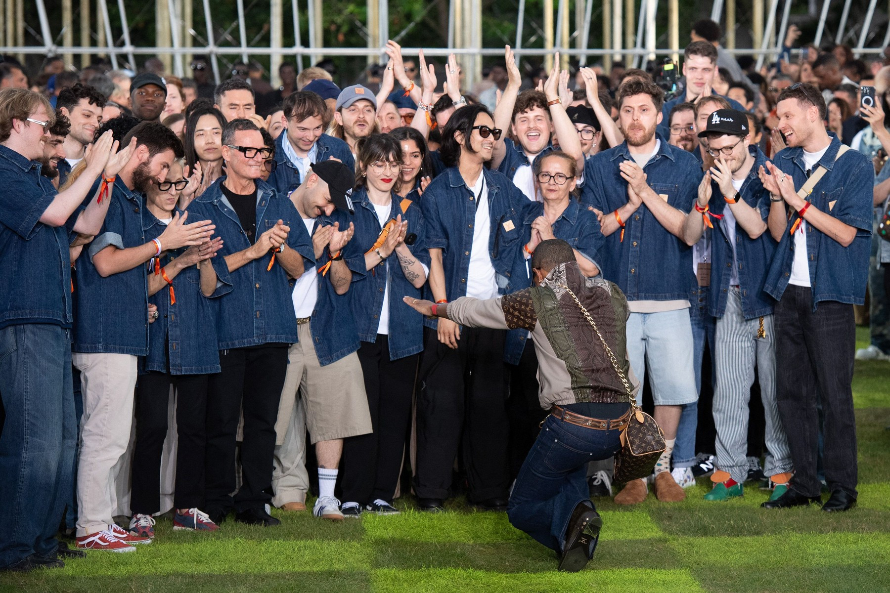 Defilarea organizată de casa de modă deţinută de grupul LVMH s-a desfăşurat în prezenţa a 1.500 de spectatori, precum şi pe fundalul strigătelor entuziaştilor din faţa clădirii, care încercau să surprindă sosirea vedetelor, printre care jucătorul de baschet din NBA Victor Wembanyama, actorul Michael Fassbender şi starul K-pop Jackson Wang.