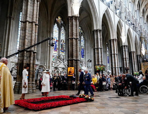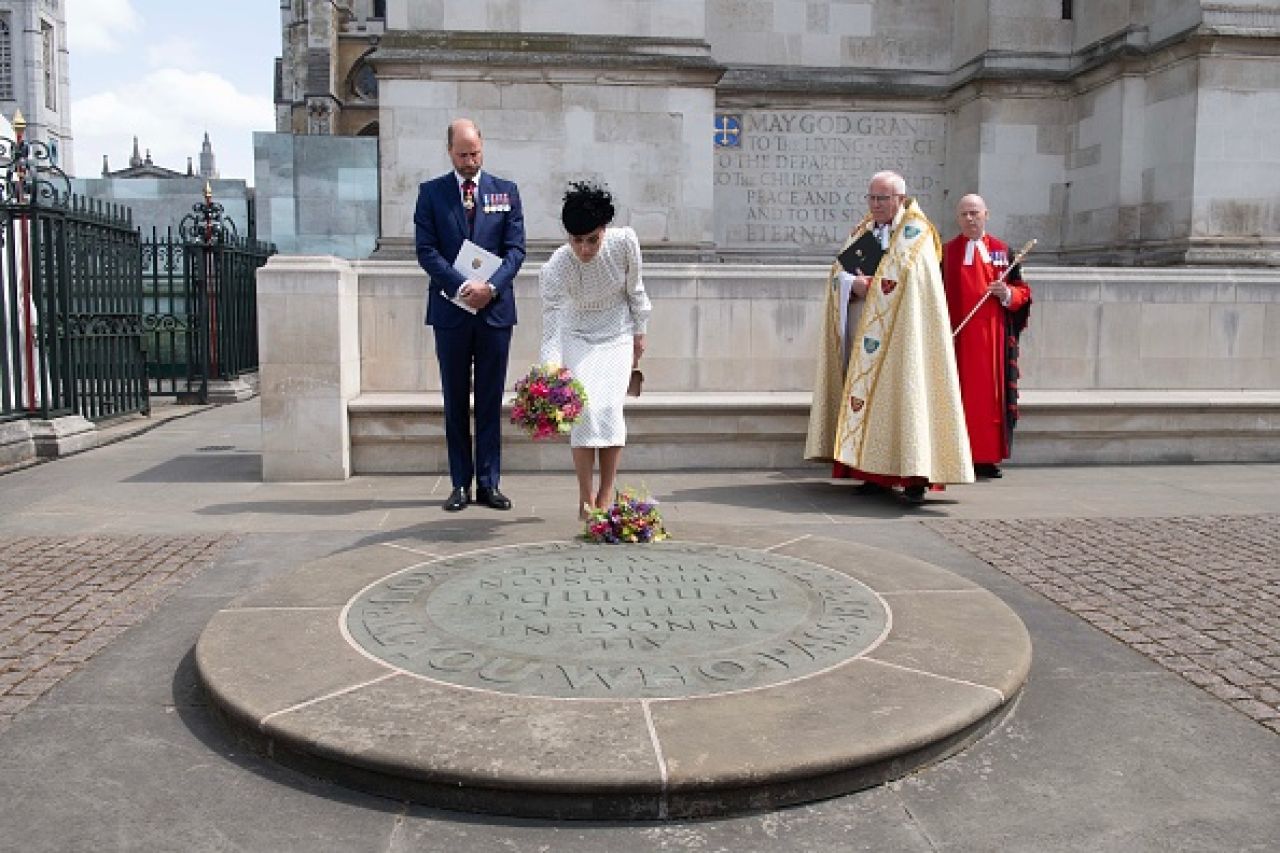 În afara abaţiei, Camilla şi Kate au depus flori şi la monumentul dedicat victimelor celei de-a doua conflagraţii mondiale.