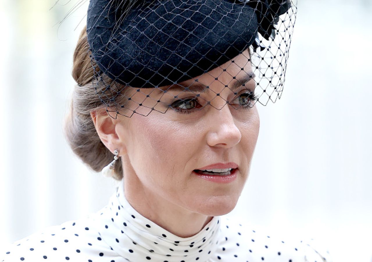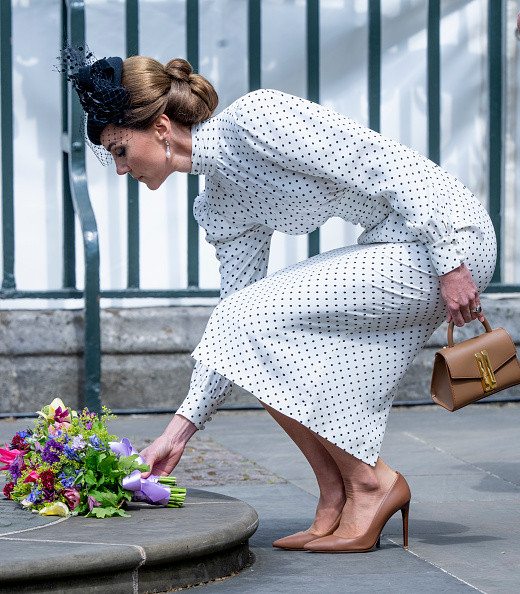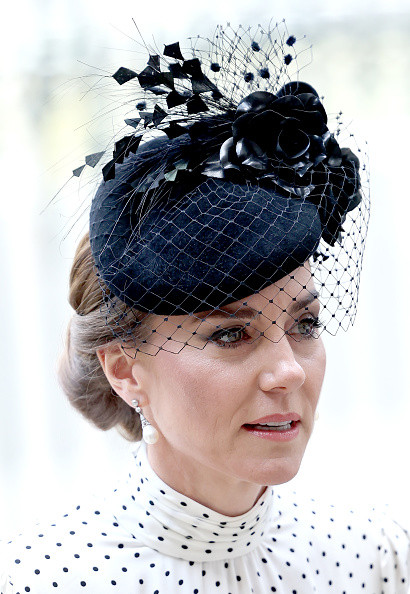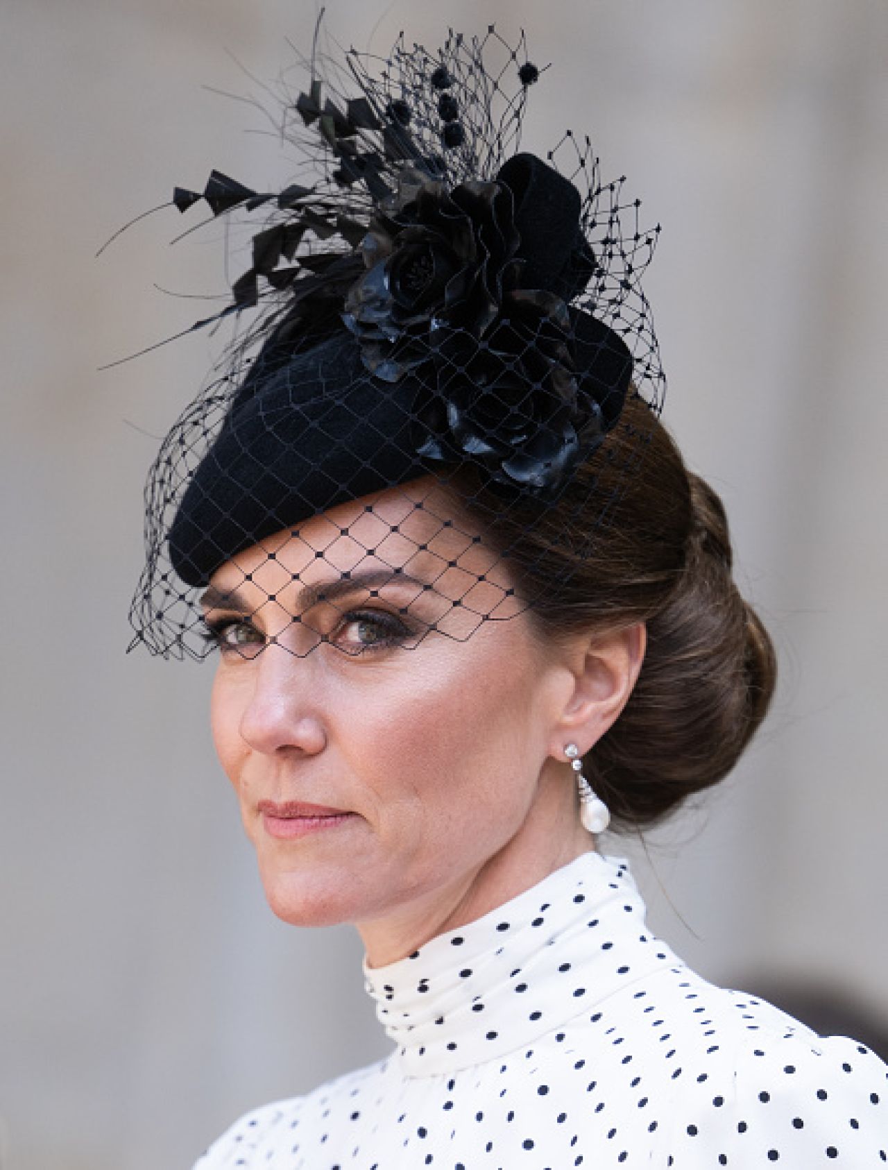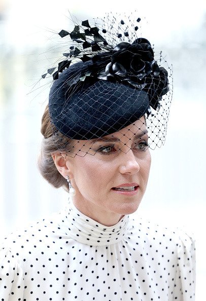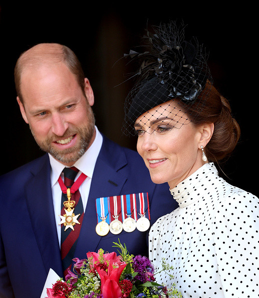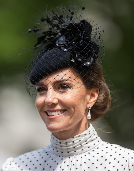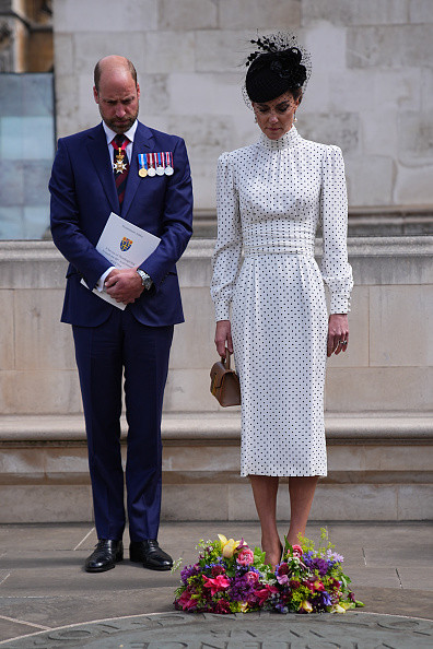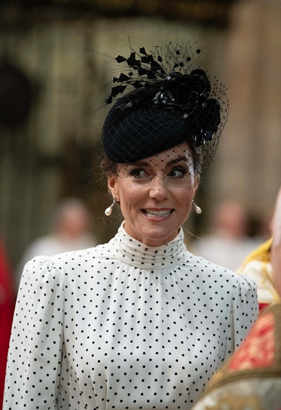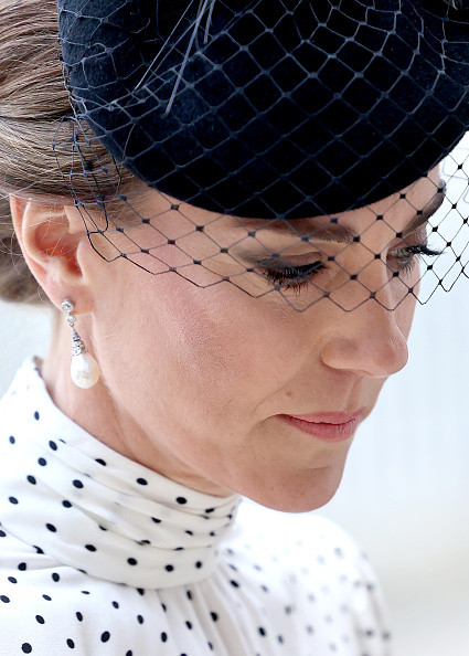 Kate a ales o rochie albă cu buline, semnată de Alessandra Rich, completată de o pălărie elegantă creată de Juliette Botterill. Ținuta a fost accentuată de o pereche de cercei cu valoare simbolică deosebită, care au aparținut regretatei Prințese Diana, mama lui William.