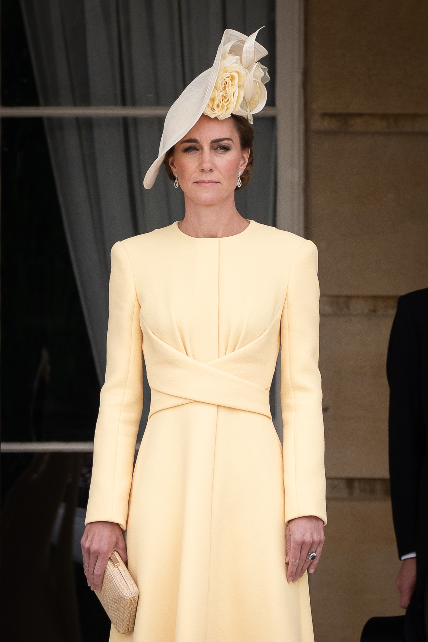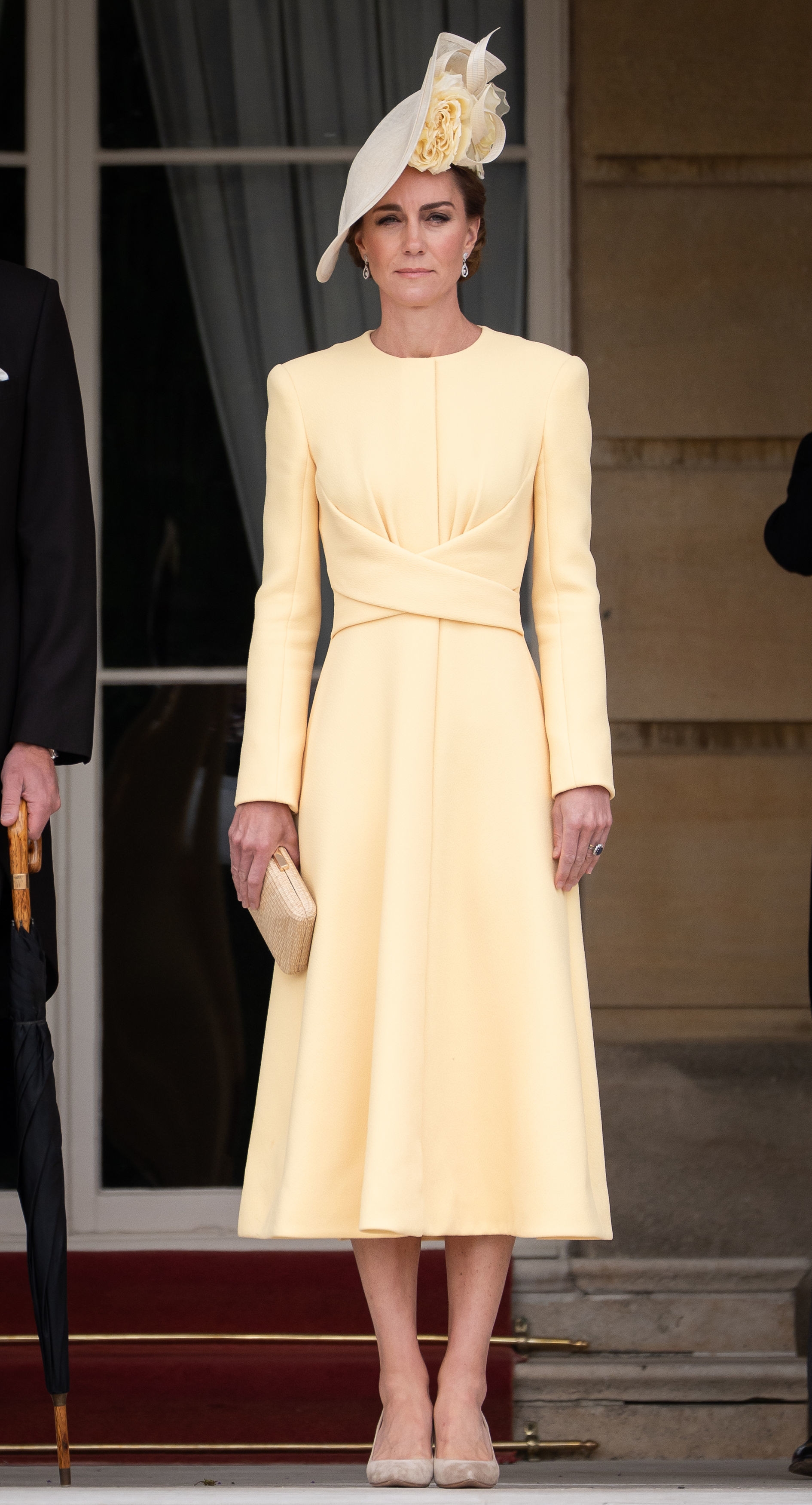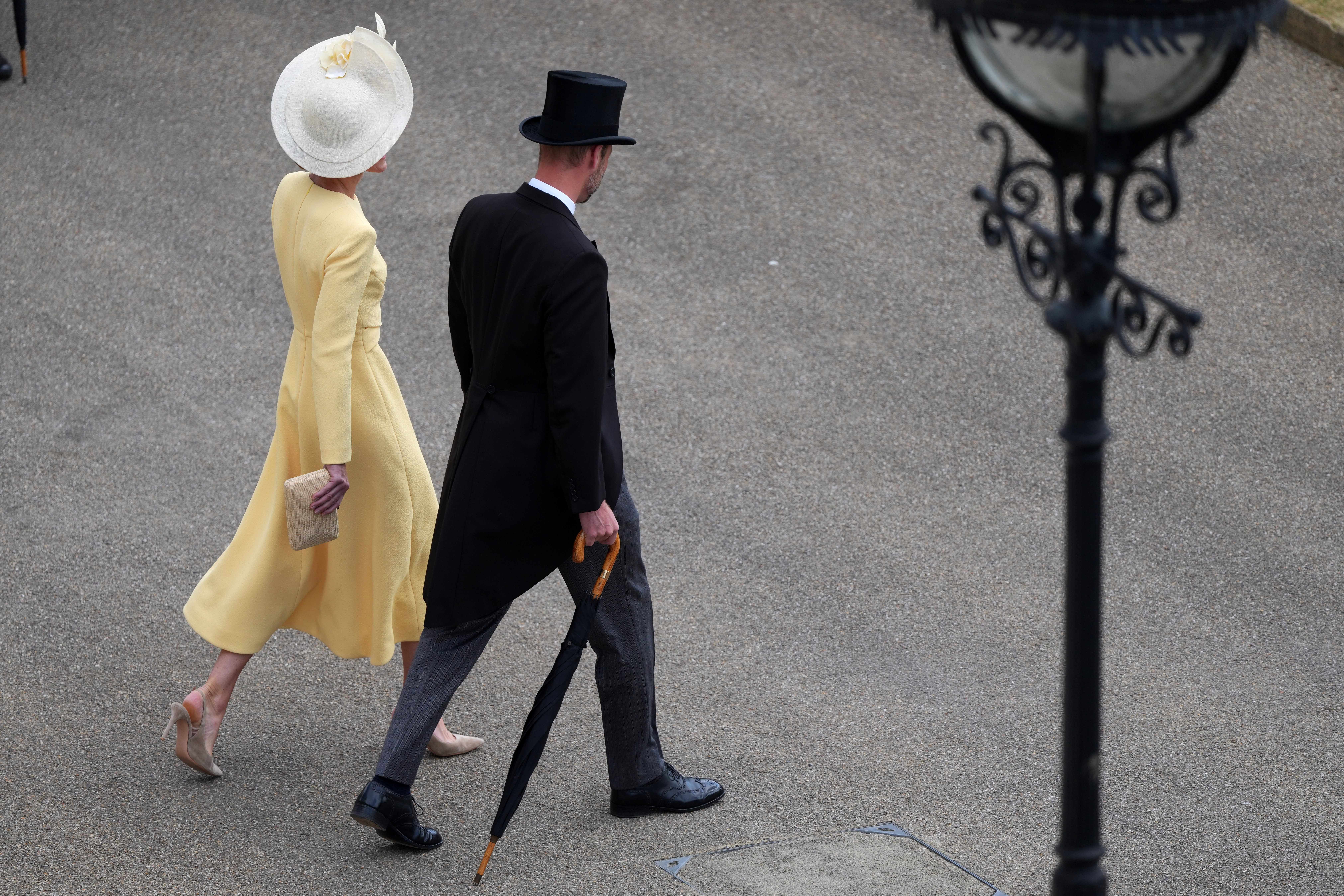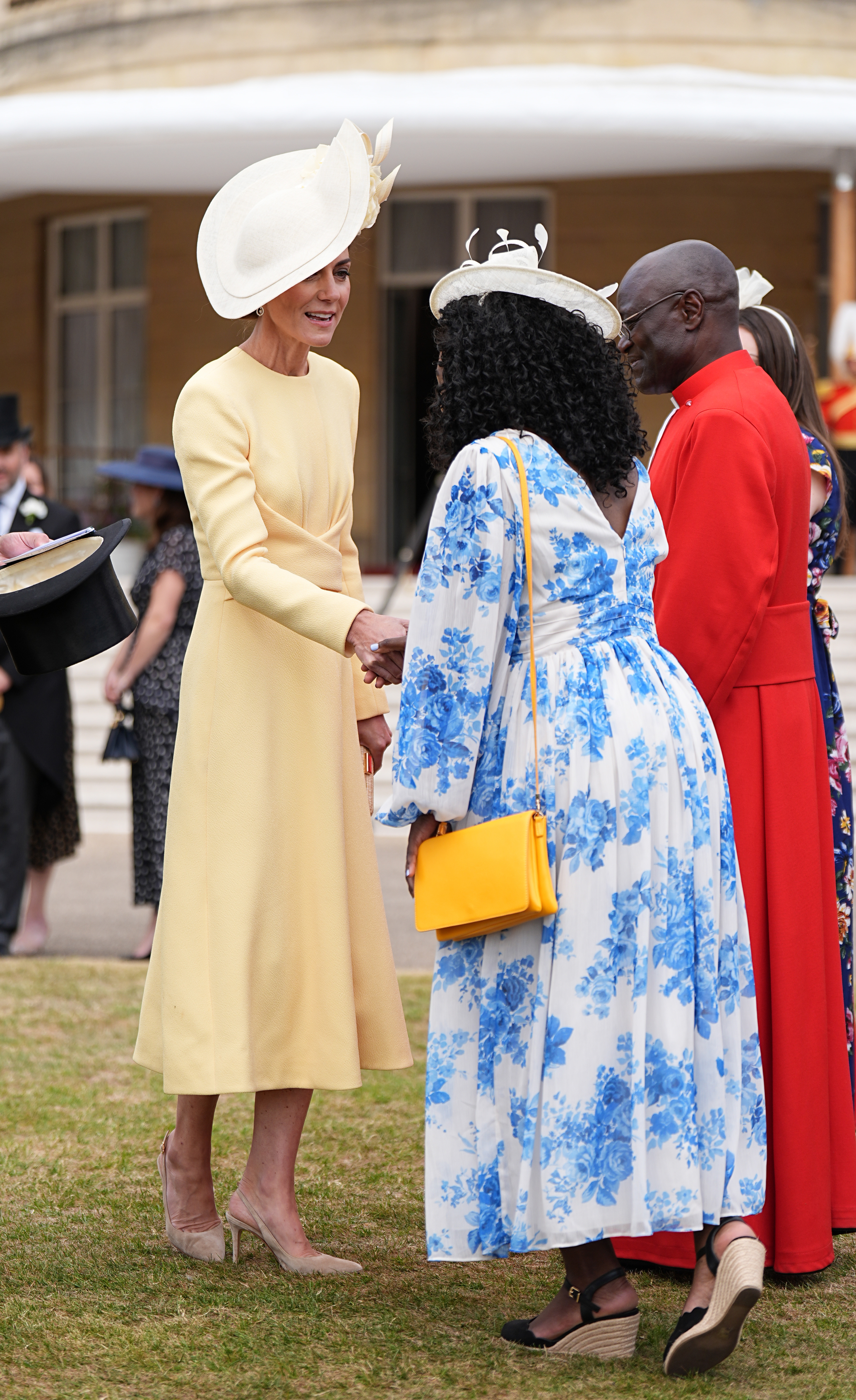 Prințesa Kate, în vârstă de 43 de ani, și Prințul William, 42, s-au plimbat printre miile de invitați prezenți pe peluzele palatului, purtând ținute impecabile. William a fost elegant într-un costum cu joben, iar Kate a atras toate privirile într-o rochie galbenă semnată Emilia Wickstead și o pălărie Philip Treacy.