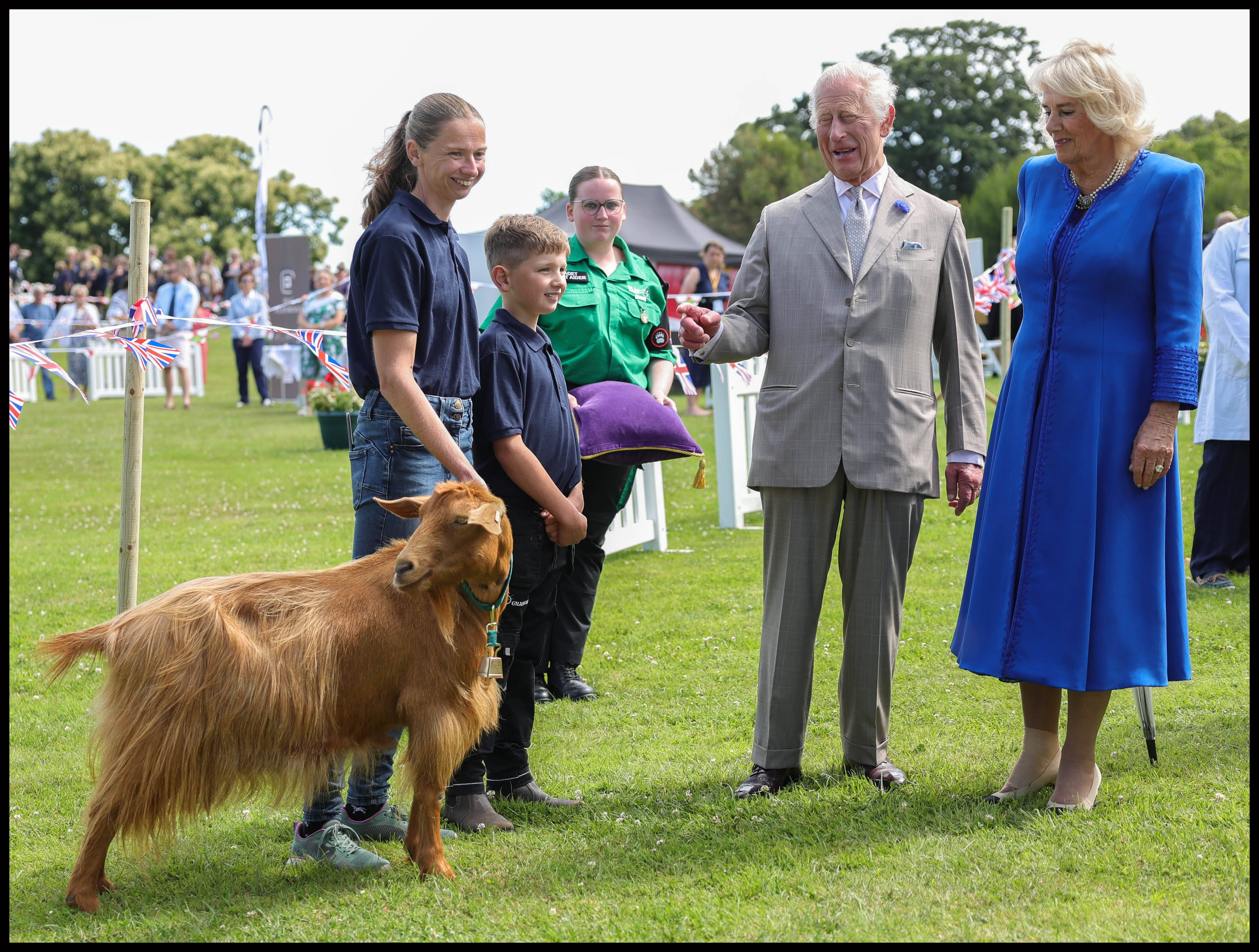 Proprietarul lui Tamsin, Joe Corr, un băiat în vârstă de 9 ani, l-a ajutat apoi pe Rege să pună un clopoțel în jurul gâtului caprei pentru a acorda ceremonial rasei un titlu regal.