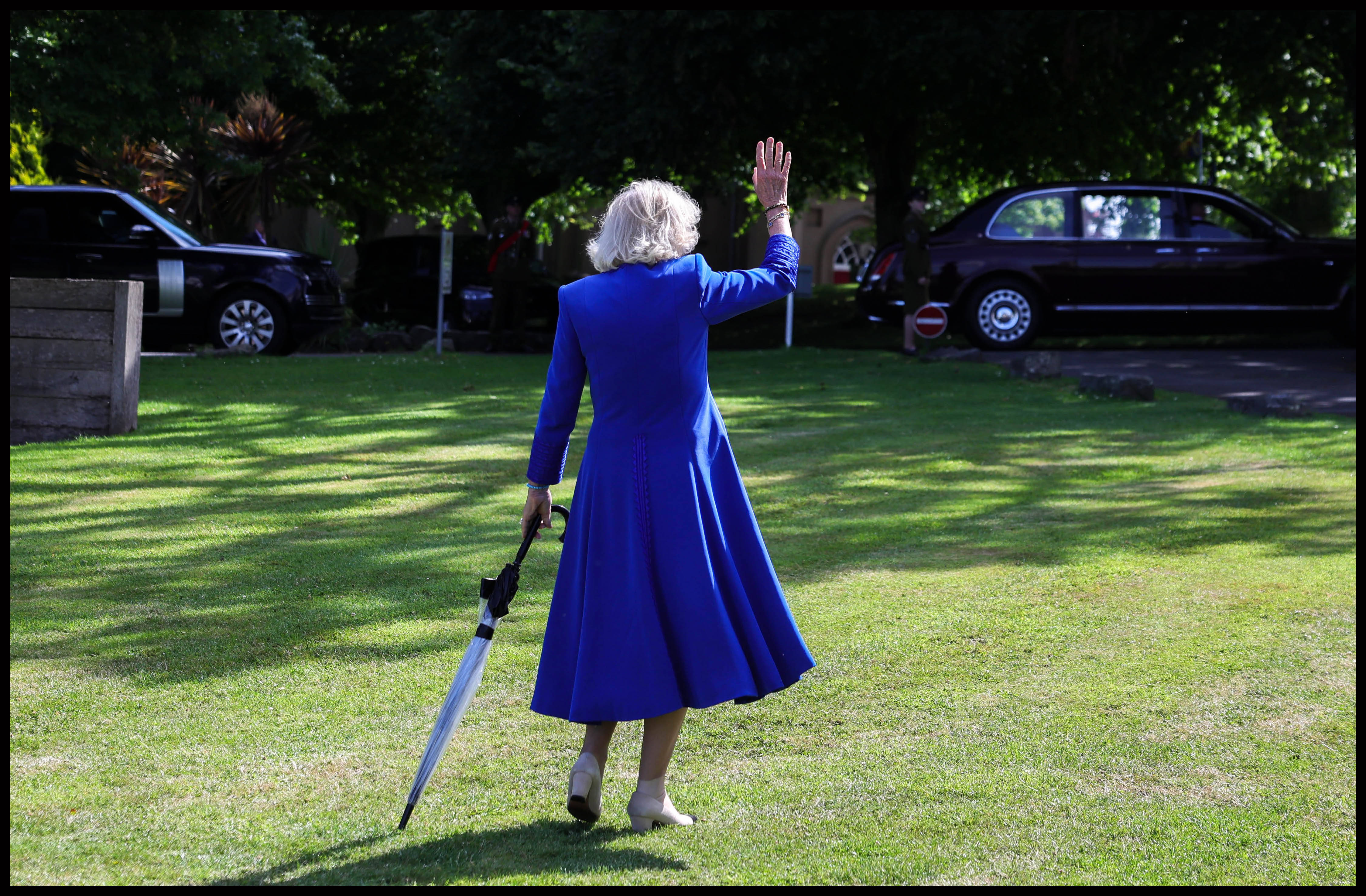 Regina Camilla a reușit o plimbare destul de lungă în ciuda entorsei de gleznă. În timp ce au urcat pe scena din St Peter Port pentru o ședință specială în afara parlamentului din Guernsey, a devenit vizibil că regina avea un bandaj pe glezna dreaptă.