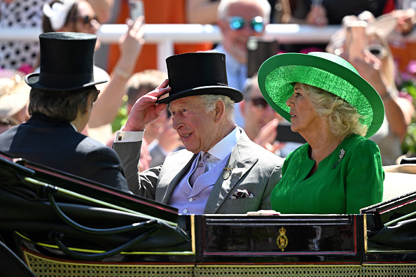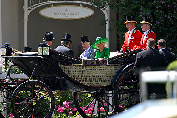În prima zi a festivalului, Charles și Camilla au primit în loja regală mai mulți invitați, printre care nepotul regelui, Peter Phillips, și partenera acestuia, Harriet Sperling, asistentă în sistemul britanic de sănătate (NHS). Harriet a participat pentru prima dată la procesiunea cu trăsuri care marchează, cu fast regal, deschiderea fiecărei zile pe celebrul hipodrom din Berkshire.