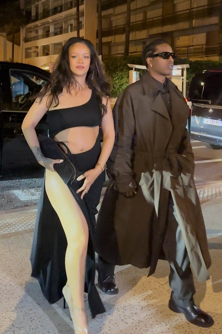 Marți seară, la Cannes, Franța, celebra artistă a ieșit la o întâlnire cu A$AP Rocky purtând o rochie neagră, lungă până în pământ, cu un umăr gol, decupaje și o despicătură pe picior.