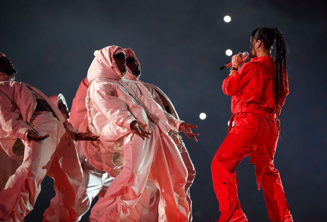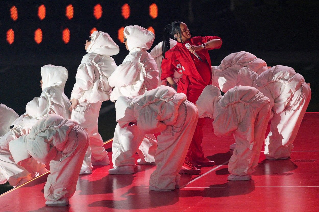 Rihanna a cântat şi a dansat pe o serie de hituri ale sale la State Farm Arena din Glendale, Arizona, unde Kansas City Chiefs a învins Philadelphia Eagles.