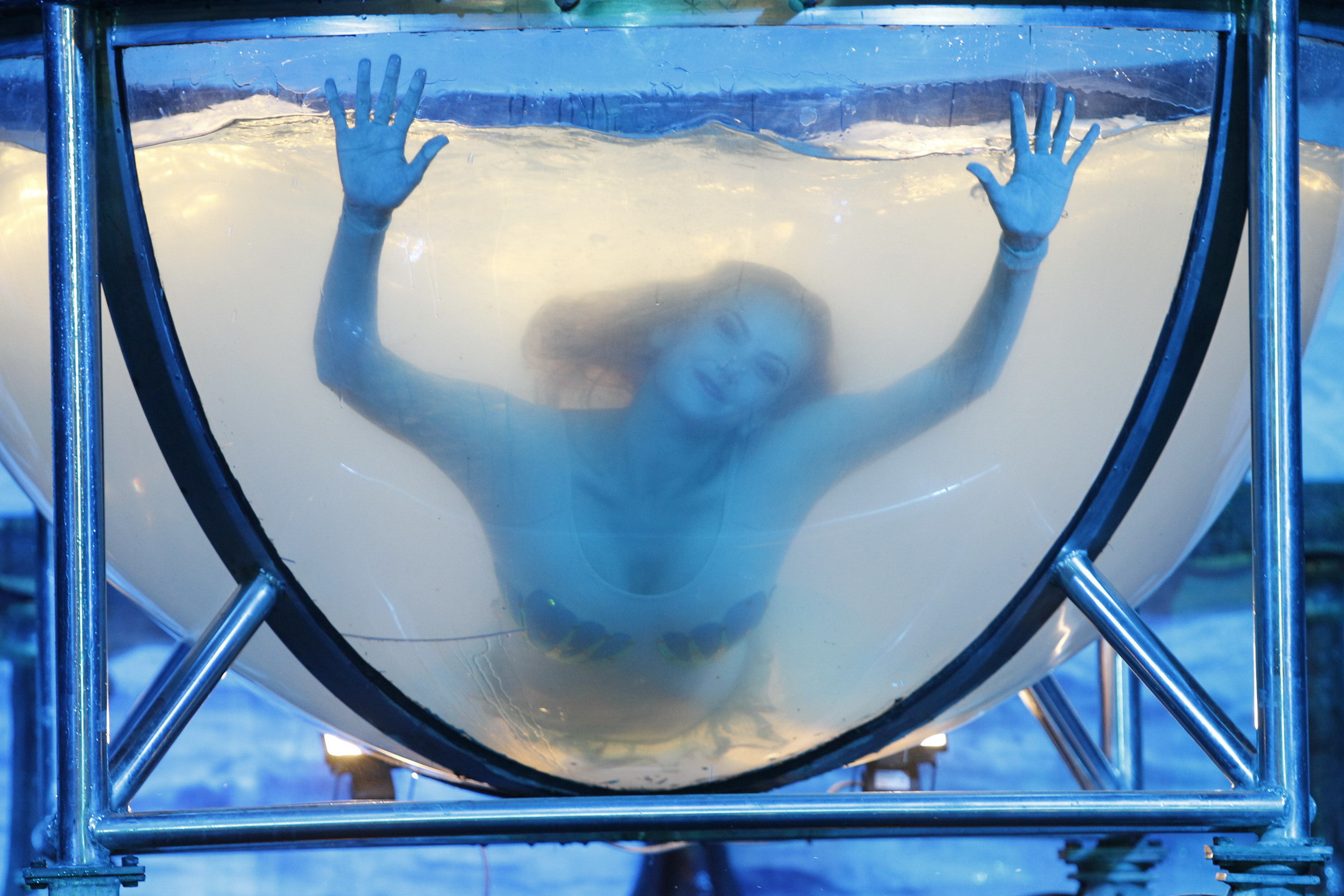 Roxana a tinut neaparat sa execute acest dans, chiar daca nu stie sa inoate foarte bine si, in plus, nu a mai stat niciodata cu ochii deschisi sub apa.