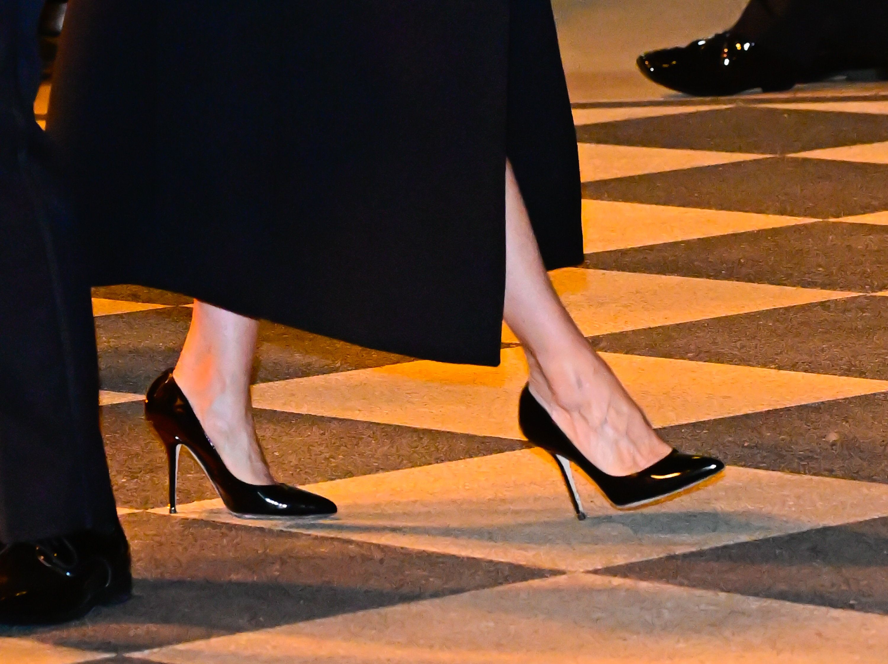 Deviind de la alegerile ei obișnuite de încălțăminte colorată și extravagantă, vedeta din „Sex and the City” a purtat pentru această ocazie o pereche clasică de pantofi Bellucci de la Dolce & Gabbana. Opțiunea simplă a inclus un exterior din piele lăcuită neagră lucioasă, vârfuri ușor rotunjite, dar ascuțite, și tălpi din piele.