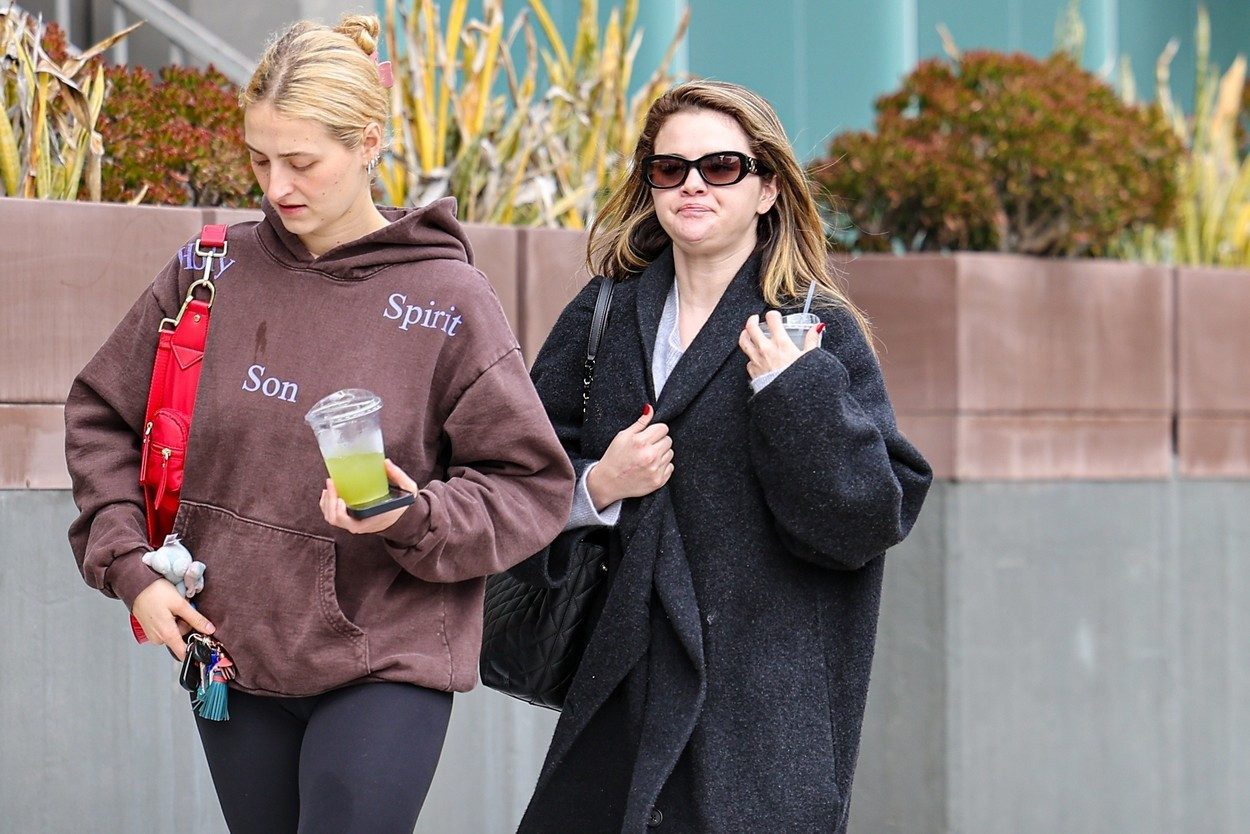 Cântăreața și actrița în vârstă de 31 de ani s-a îmbrăcat cu palton gri confortabil atunci când a ieșit să mănânce sushi și să meargă la cumpărături în Beverly Hills cu prietena ei, Anna Collins, potrivit Daily Mail.