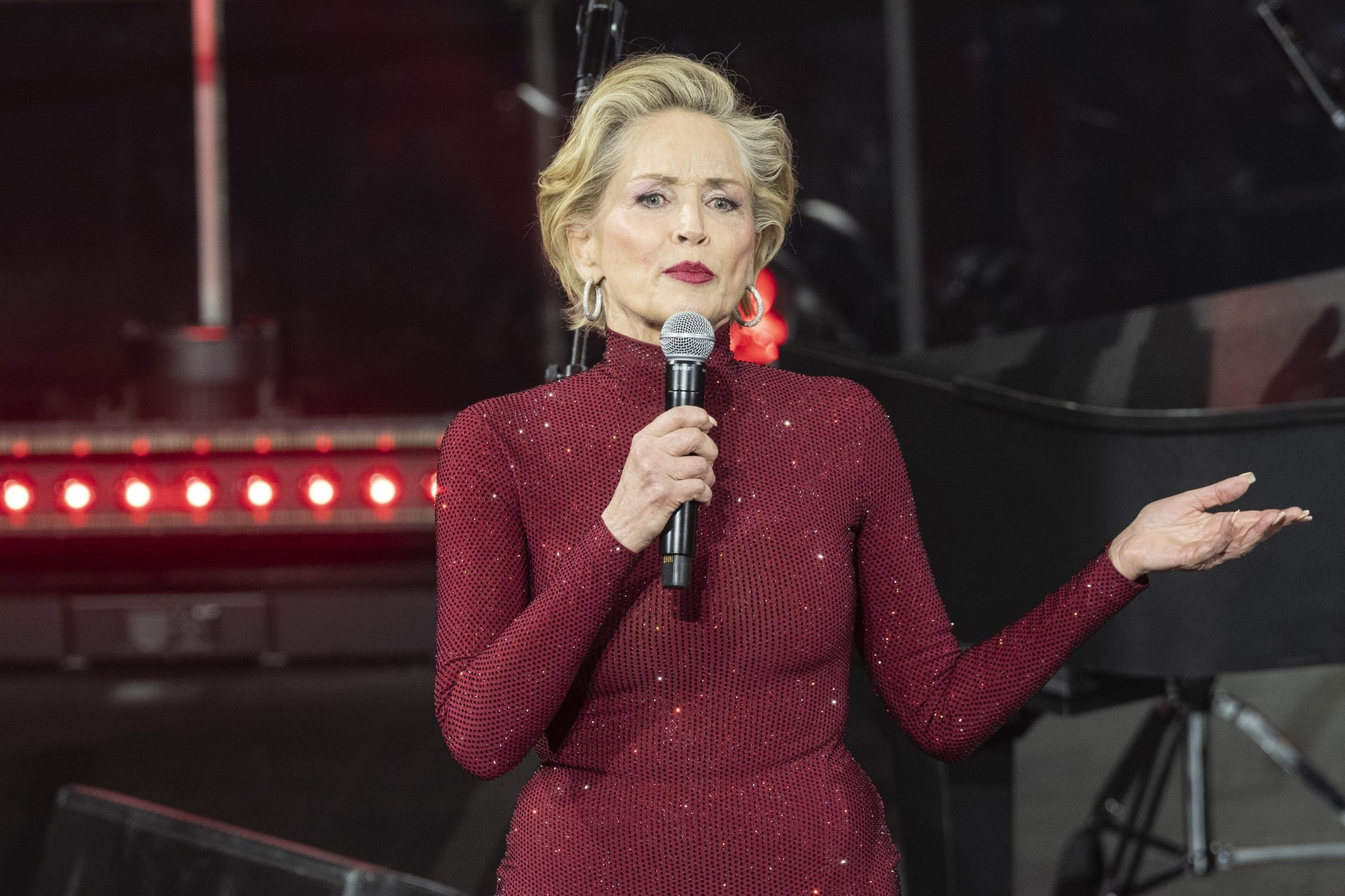 Sharon Stone a mărturisit pe covorul roșu că este „foarte recunoscătoare” că a supraviețuit accidentului vascular cerebral care a lovit-o în 2001 și care a forțat-o să ia o pauză de la actorie pentru a se recupera.