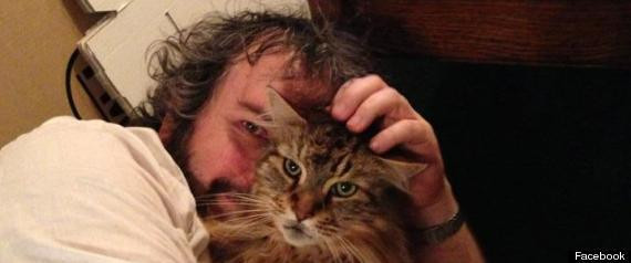 Finalul zilei l-a prins culcat pe o canapea, langa biroul sau, avandu-l in brate pe "Mr. Smudge", motanul acestuia.