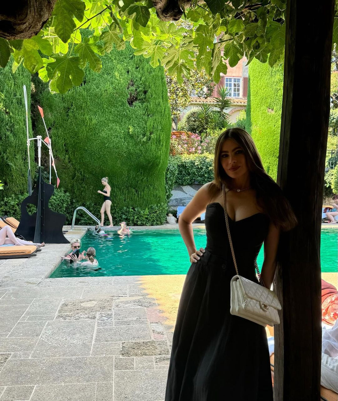 Superba actriță din Modern Family, în vârstă de 52 de ani, a îmbrăcat în fotografiile postate o rochie fără bretele cu imprimeu floral, care i-a pus în evidență silueta. Ea a purtat tocuri aurii pe care le-a asortat cu o geantă aurie de la un brand celebru.