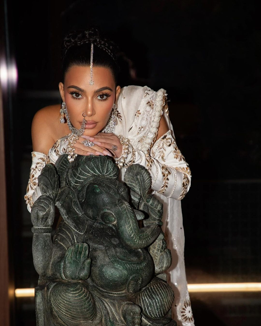 Kim, 43 de ani, și Khloé, 40 de ani, au fost invitate la nunta moștenitorului miliardar de sâmbătă, 13 iulie, optând să poarte haine tradiționale, care sunt adesea purtate de femei la ceremoniile de nuntă.