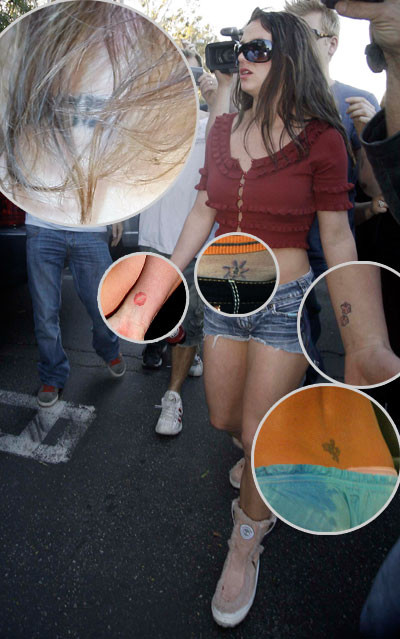 O zana, urmele unui sarut, niste zaruri. Tatuajele lui Britney Spears par sa fie facute insa aproape in joaca si sunt mititele, spre deosebire de cele ale Rihannei. Cantareata are stelute pe spate, note muzicale pe picior si pistoale la subrat.