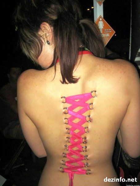 Iar daca esti cu totul si cu totul rezistent la durere, incearca 18 pierce-uri deodata, de o parte si de alta a coloanei vertebrale. Cum de ce? Ca sa poti lega o panglica roz de ele, bineinteles!