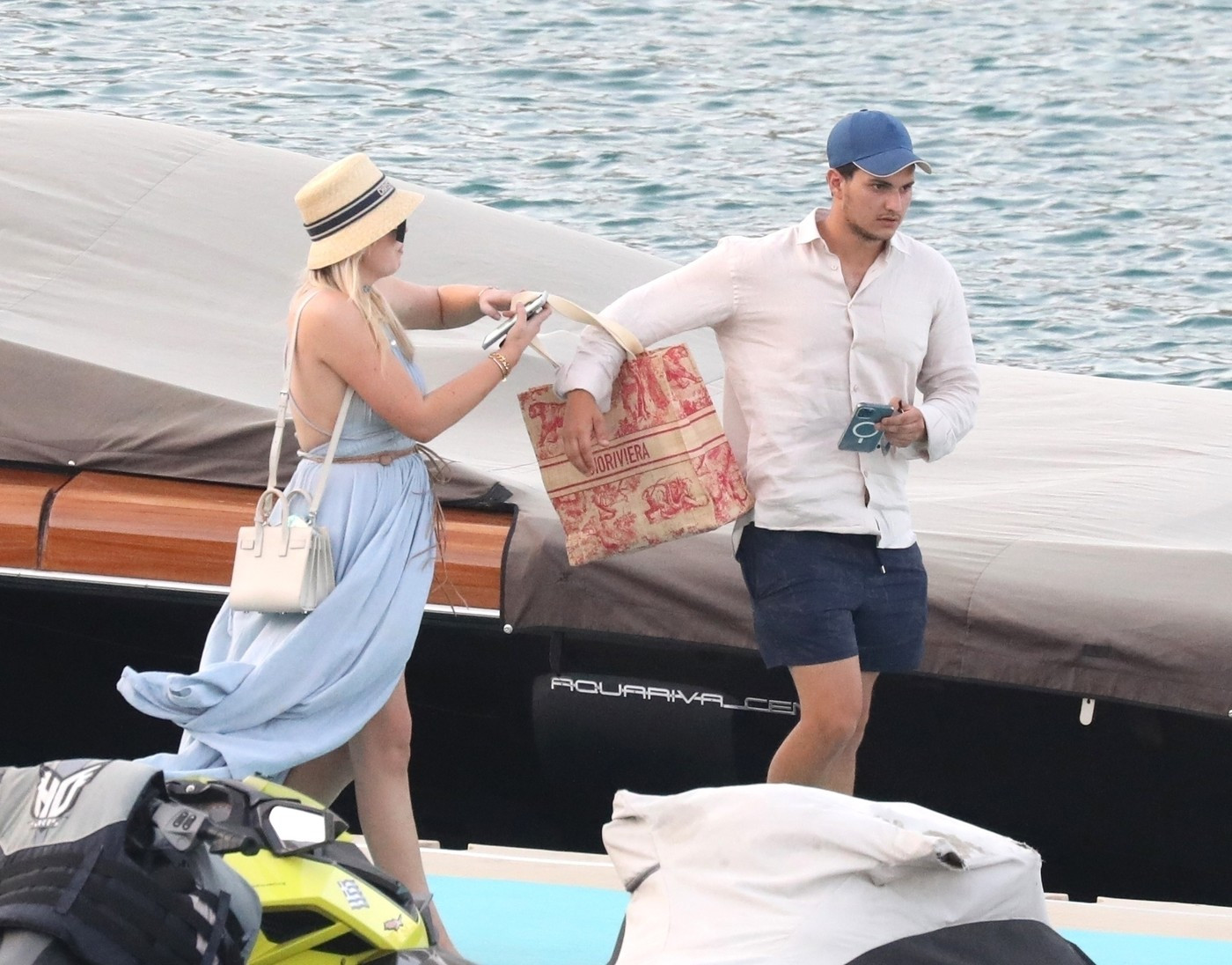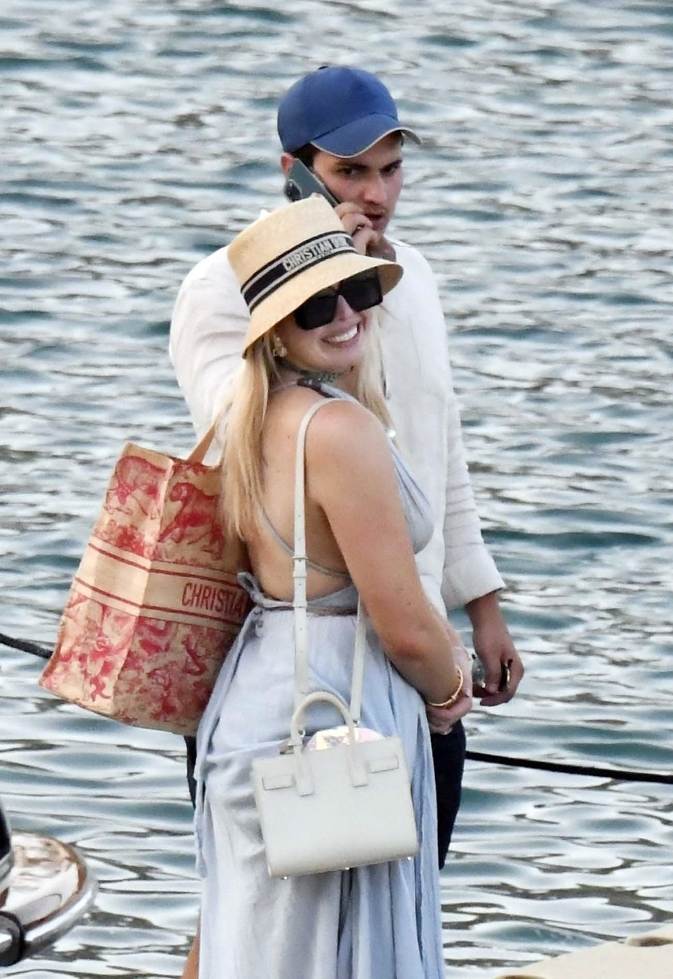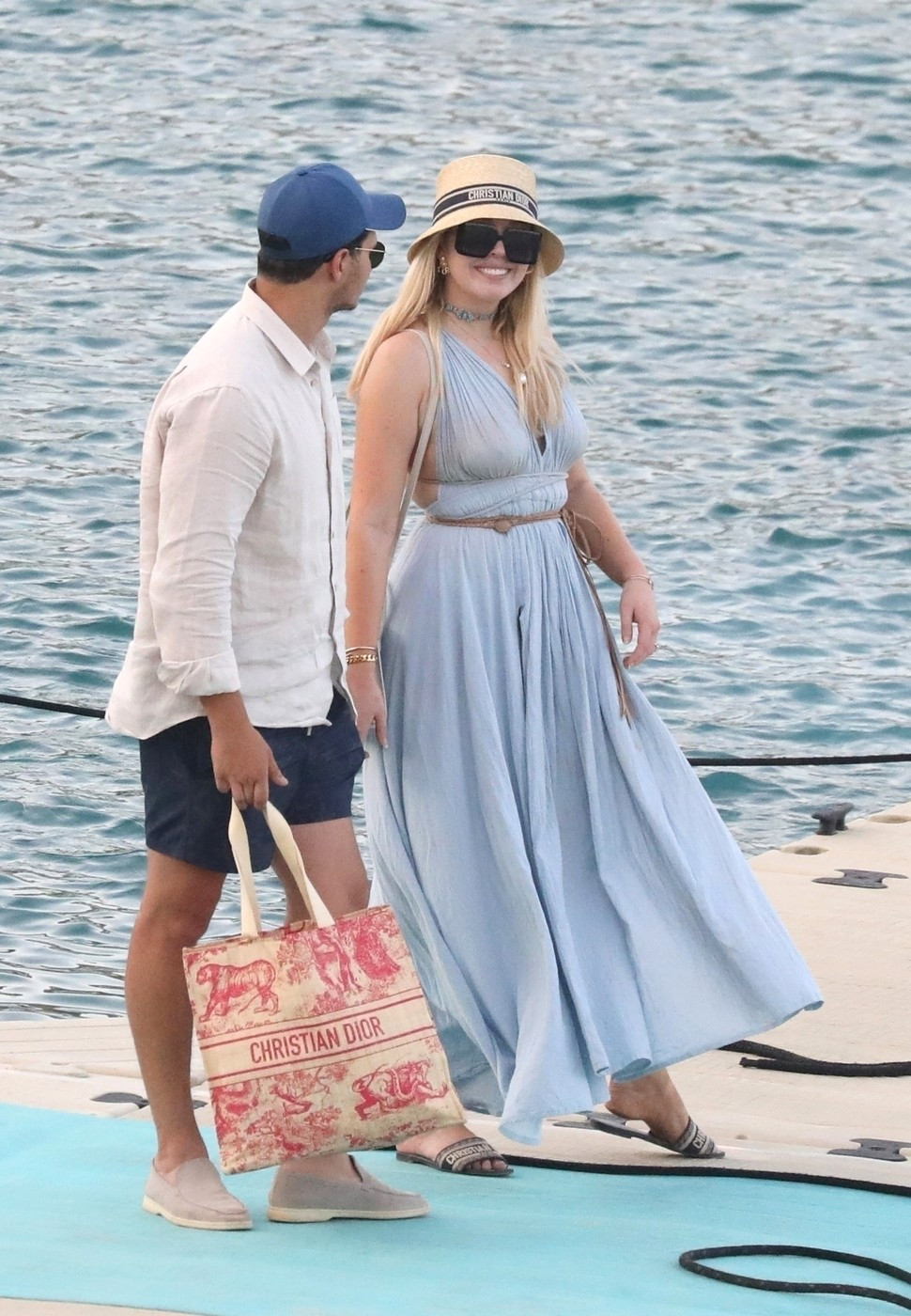 Ea purta o rochie lungă, de culoare maro, care îi lăsa umerii la vedere și îi evidenția burtica, asortată cu sandale roz și o poșetă în aceeași nuanță. Michael a adoptat un stil casual, cu un tricou polo negru și pantaloni khaki.