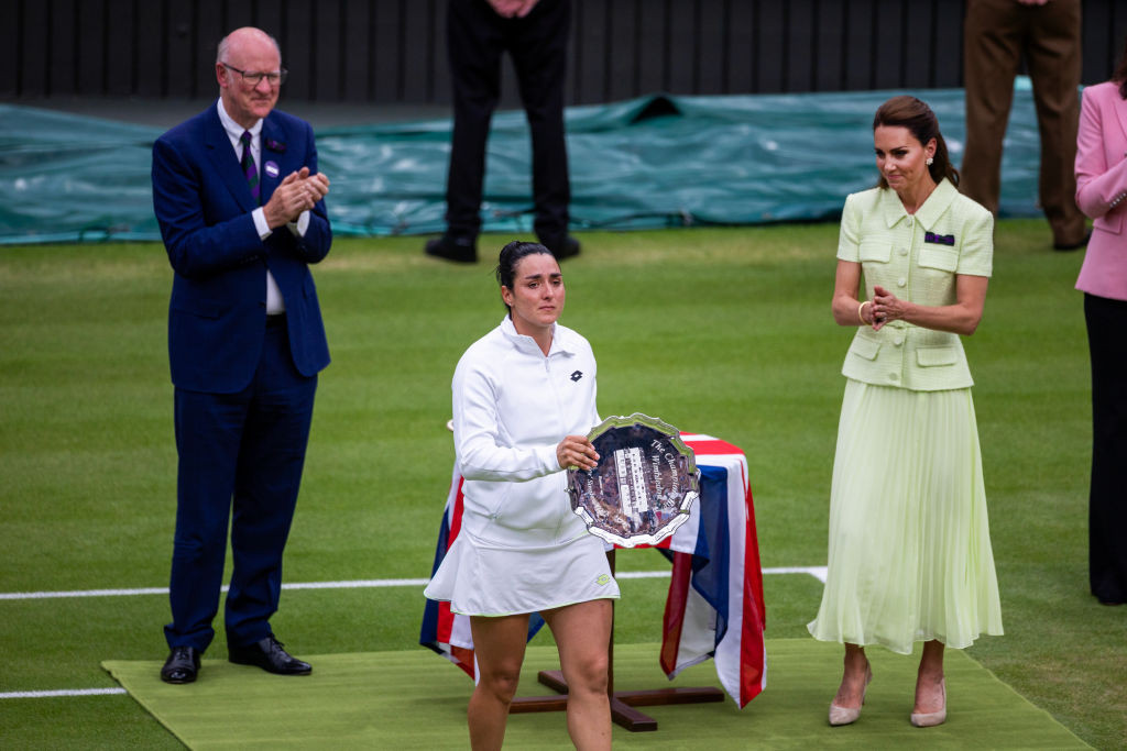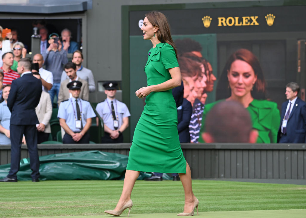 În 2023, prințesa de Wales a participat la Wimbledon pentru a înmâna trofeul campionului la simplu masculin Carlos Alcaraz, purtând o rochie verde smarald de la Roland Mouret.