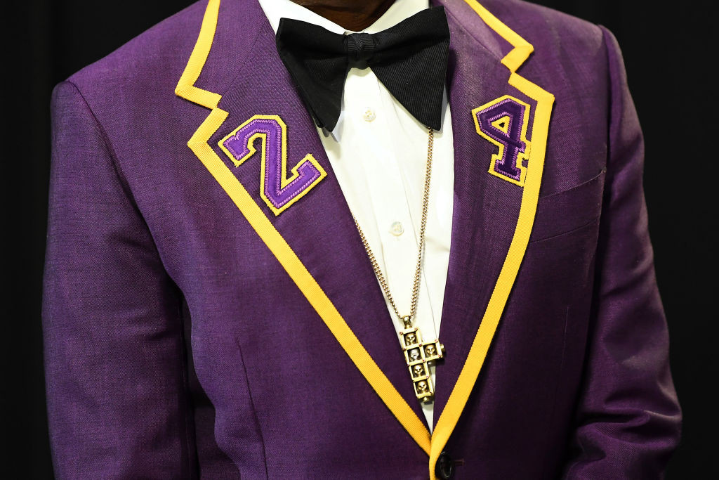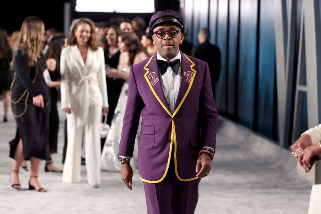 Spike Lee a ales Gucci. Costumul mov, cu inserţii aurii, a avut imprimat numărul 24 - acesta fiind omagiul adus fostului baschetbalist Kobe Bryant, care a murit pe 26 ianuarie într-un accident de avion. Cineastul a purtat şi accesorii asortate.