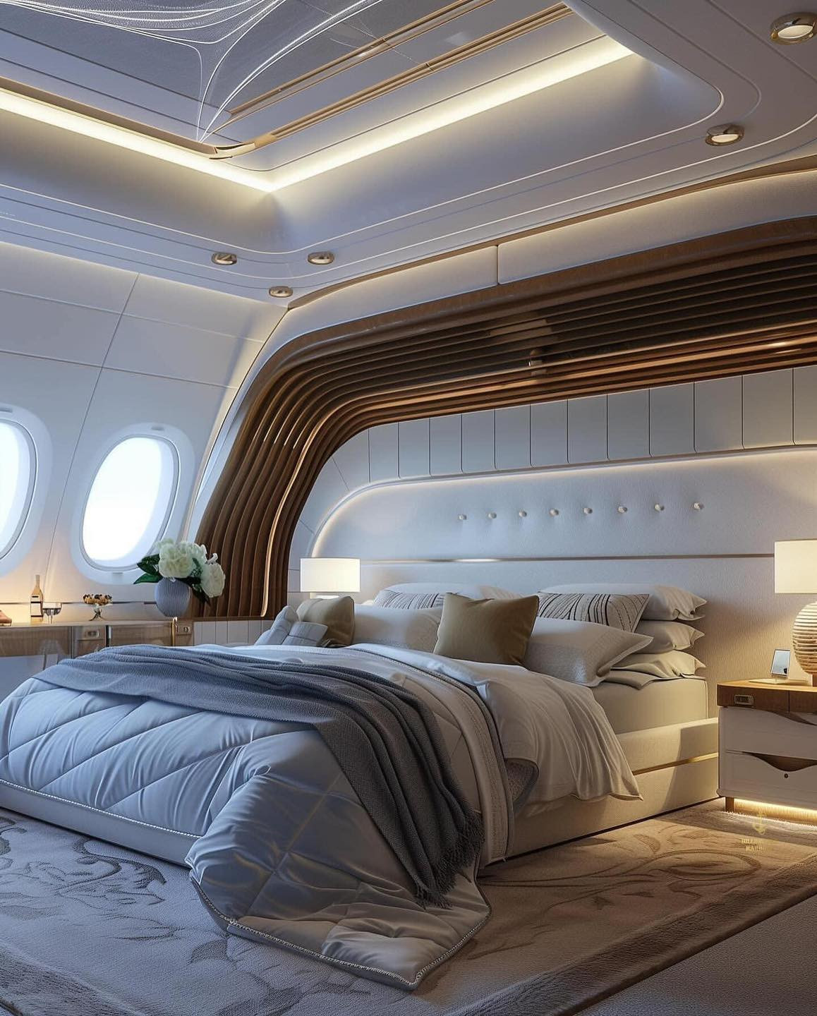 ”Vă prezentăm supremul luxului aeropurtat: un Airbus A380 transformat într-un conac zburător! Urcă-te la bordul acestui concept opulent cu: cameră de zi; zone de vitrine auto cu Lamborghini și Rolls Royce; sală de mese; dormitoare; băi; dulapuri; bar și zonă de lounge; cinema privat. Vă puteți imagina stilul de viață al ultra-bogaților care se învârt prin cer cu acest avion magnific?”, scriu cei de la Billionaire Harbour.