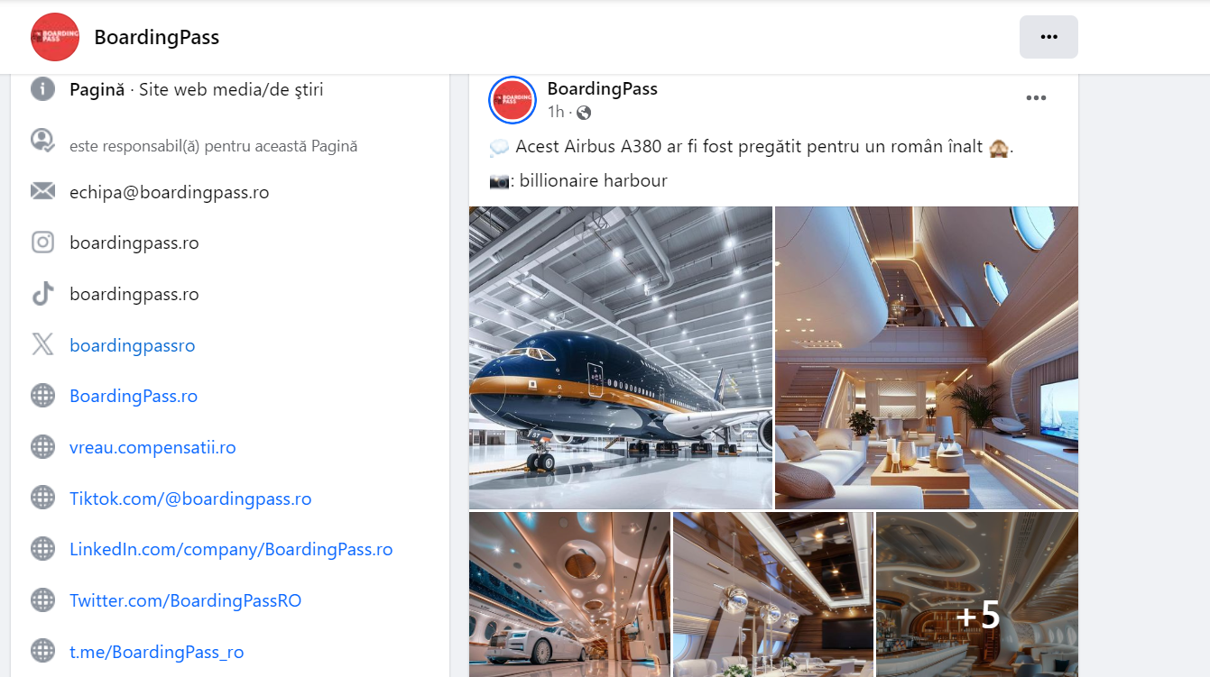 ”Acest Airbus A380 ar fi fost pregătit pentru un român înalt”, sună descrierea misterioasă a sursei citate, deasupra unor fotografii care te lasă fără cuvinte.