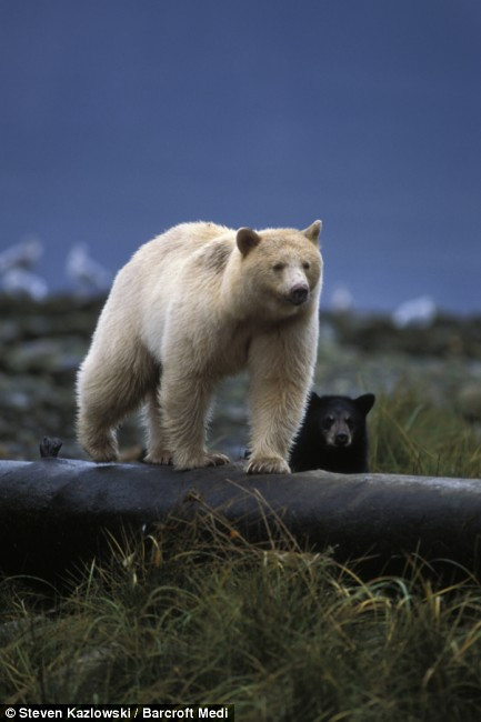 Arata ca un urs polar care s-a aventurat la sud, dar, de fapt, aceste fotografii unice infatiseaza un urs negru. Specia din care face parte este denumita Spirit.