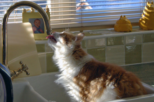 Unde ii place lui PISI cel mai mult sa doarma? In chiuveta! SUPER FOTO