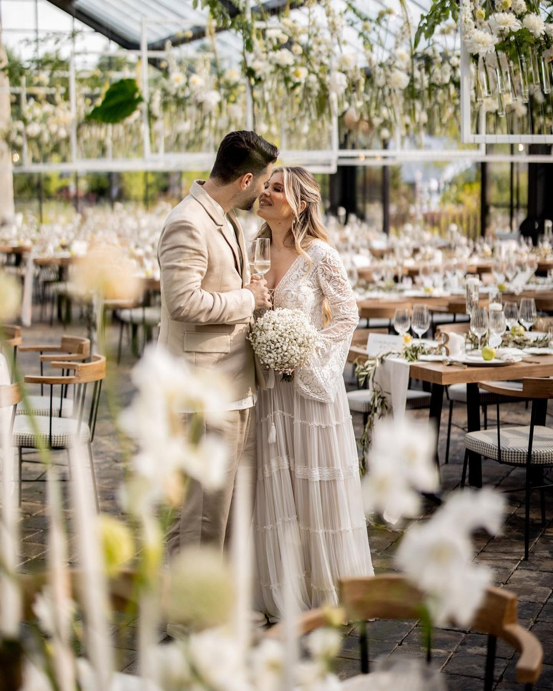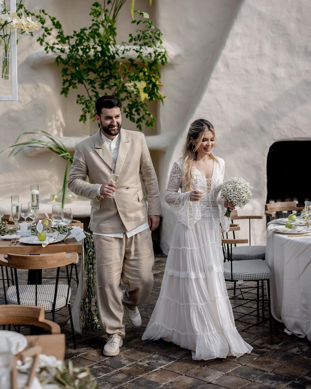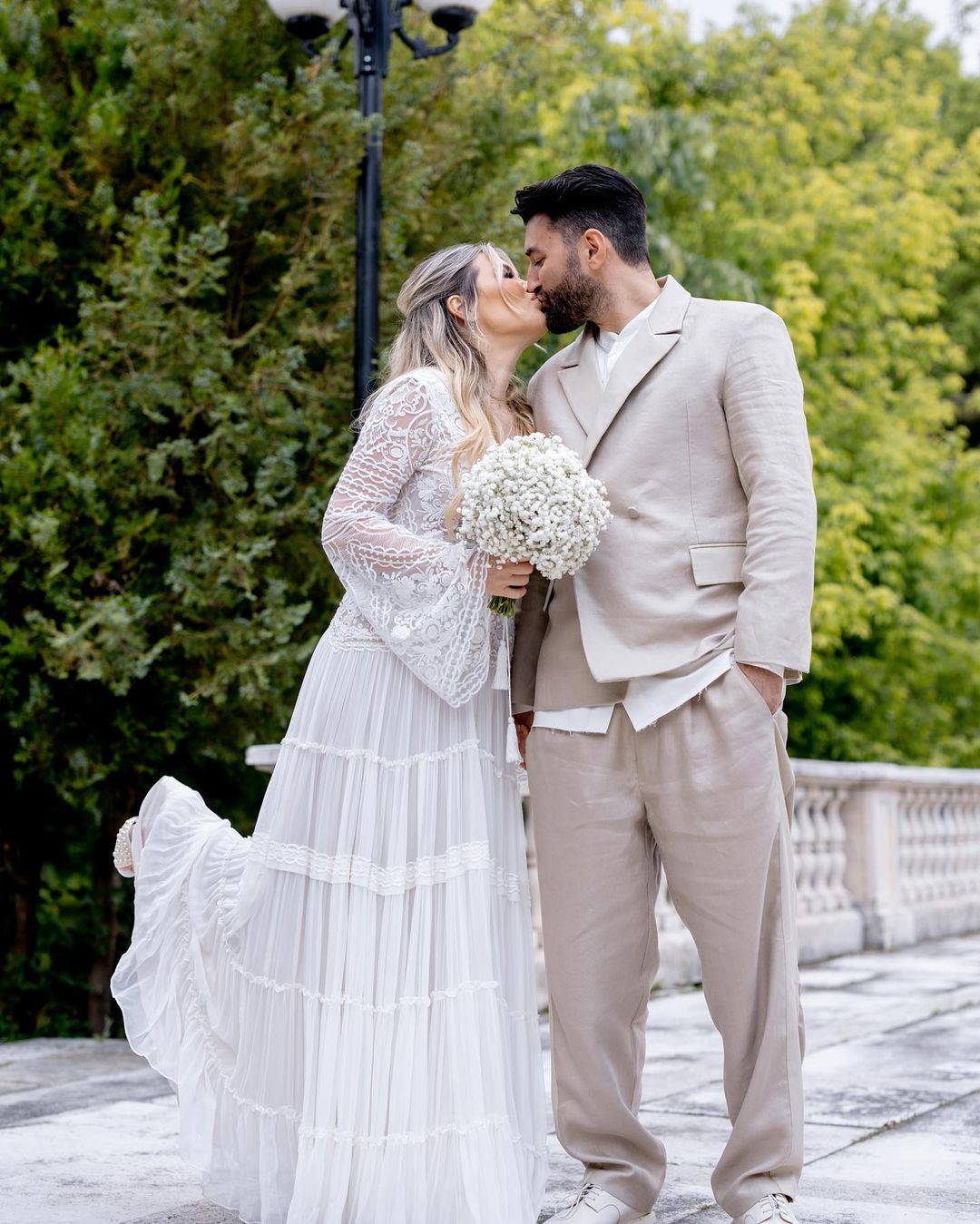 Gina Pistol a purtat la cununia civilă o rochie lungă, albă, vaporoasă și a avut un buchet de floarea miresei, iar Smiley a ales să îmbrace un costum lejer, de culoare bej și o cămașă albă.
