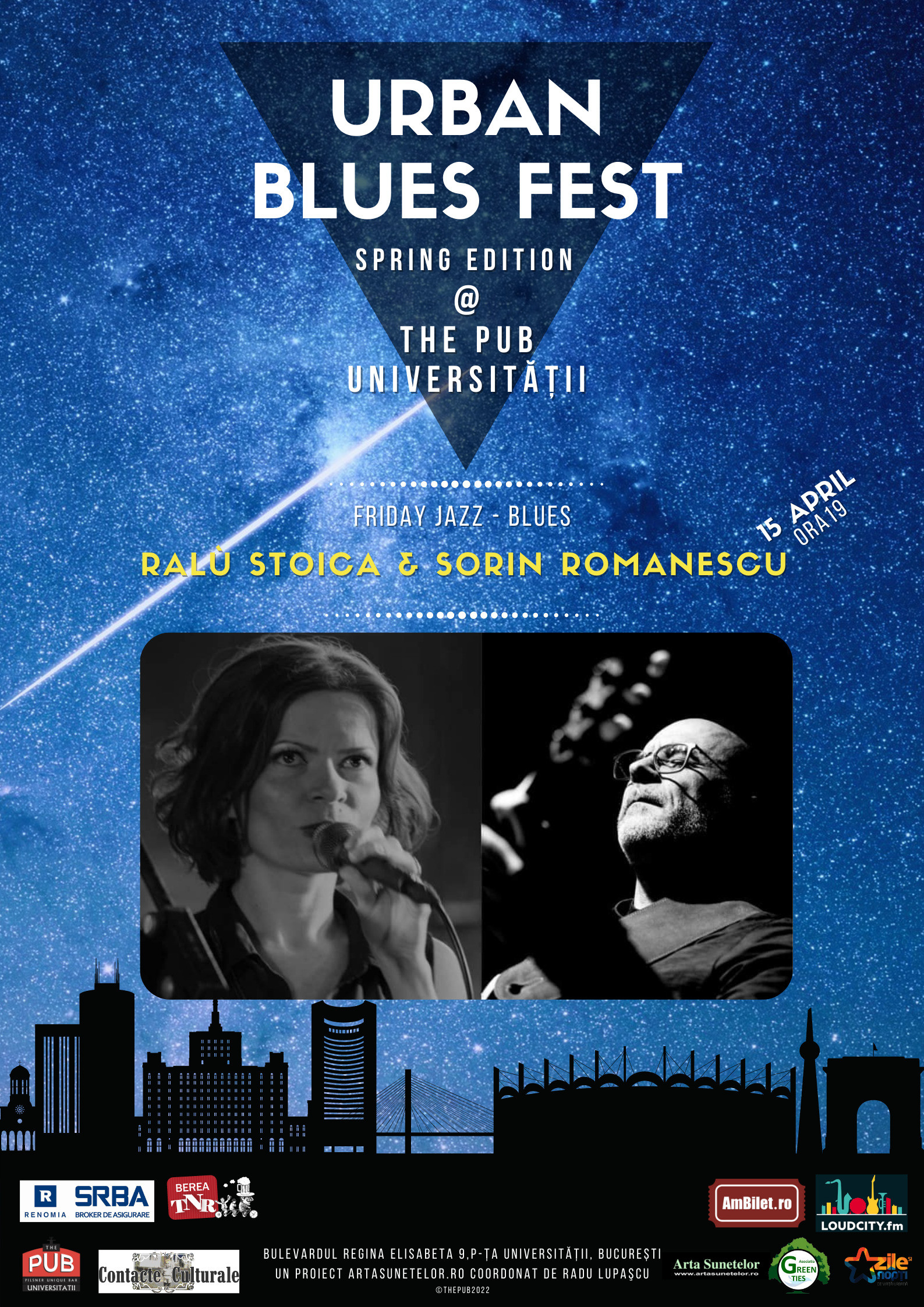Tot vineri, 15 aprilie, vocea solistei de jazz și musical, Ralù Stoica, şi sunetele chitarei experimentatului Sorin Romanescu vă vor purta într-o călătorie pe tărâmul muzicii pline de romantism și culoare a jazzului american, condimentată cu ritmurile bossanovei braziliene și cu alte elemente surpriză.
