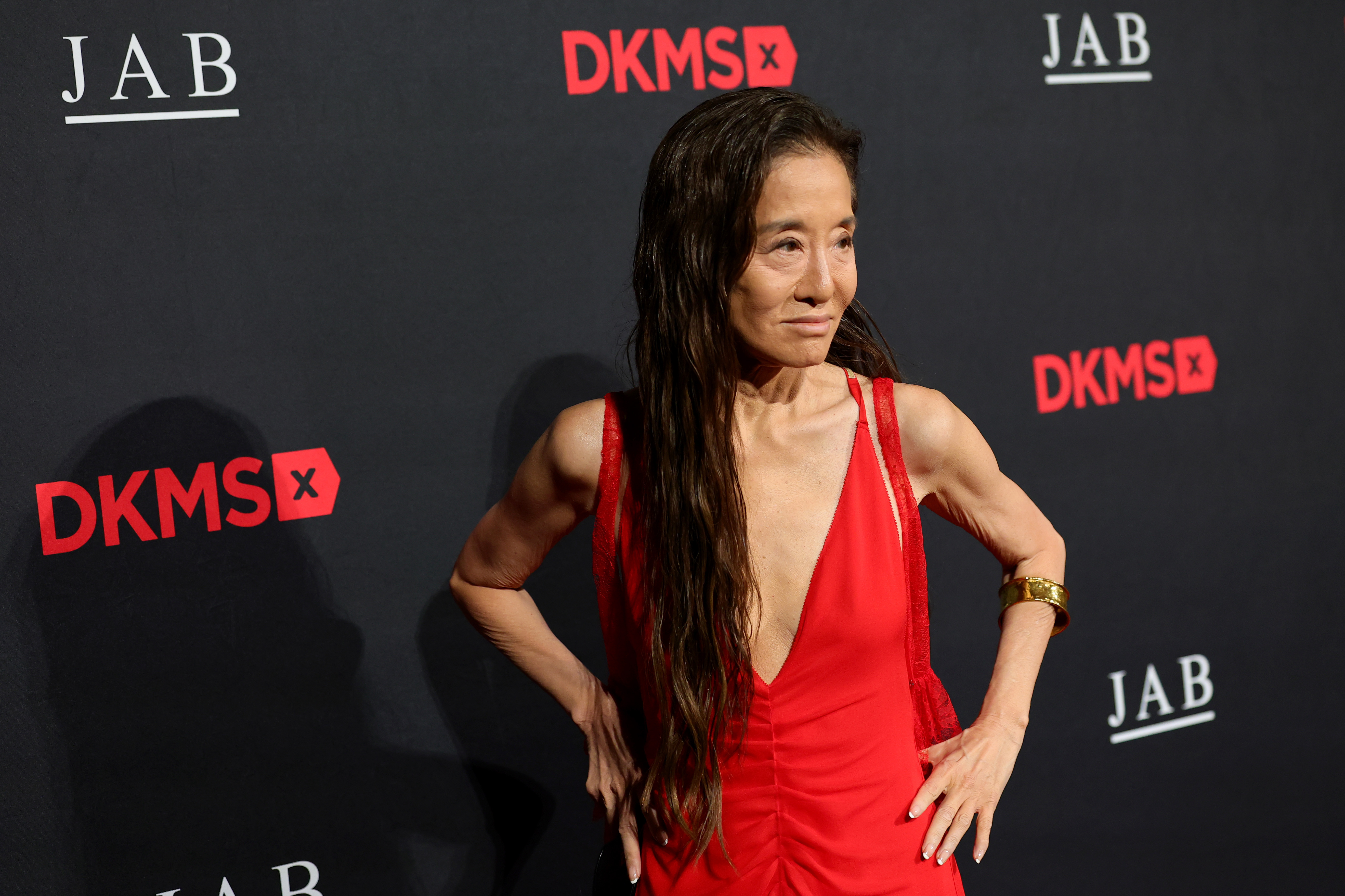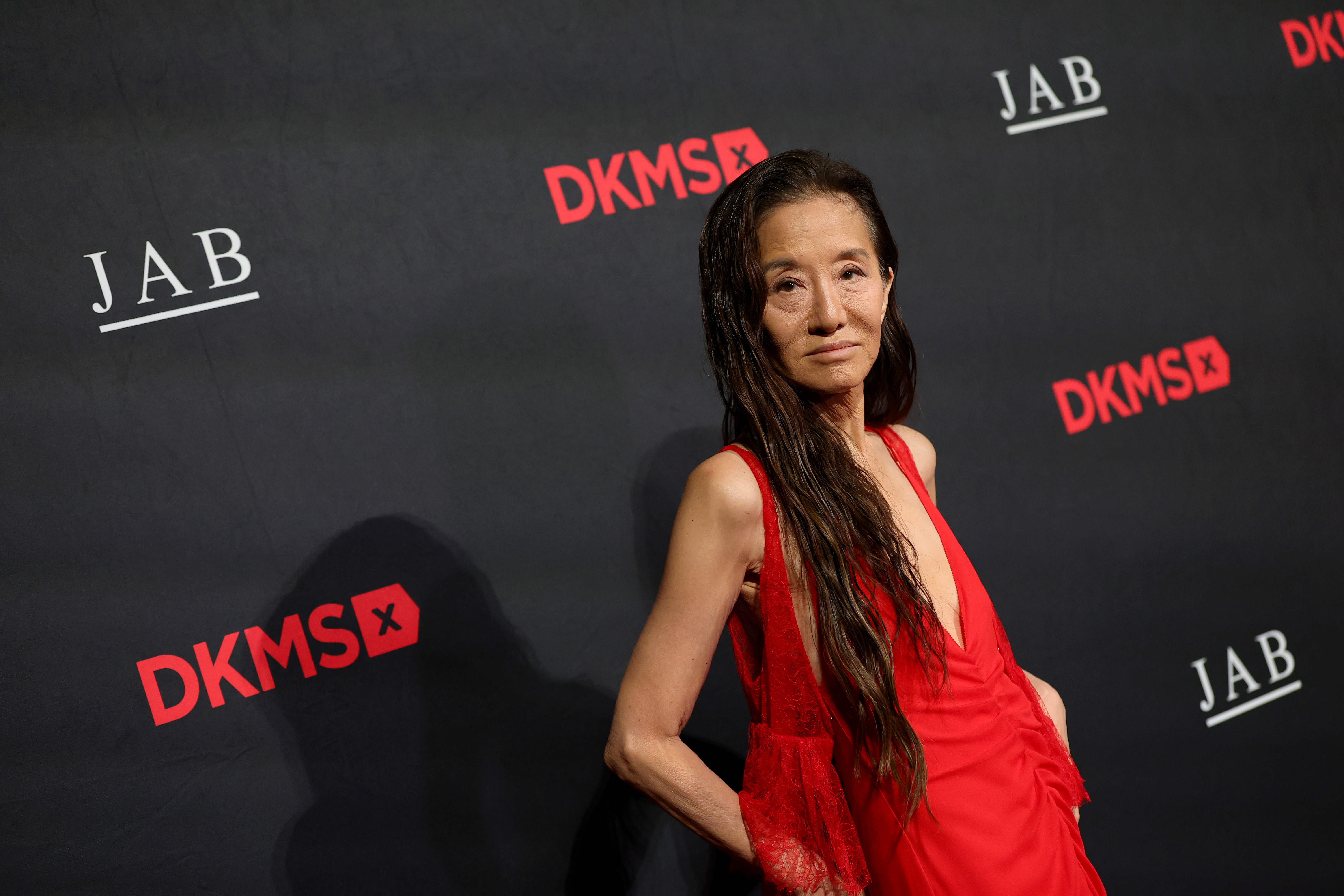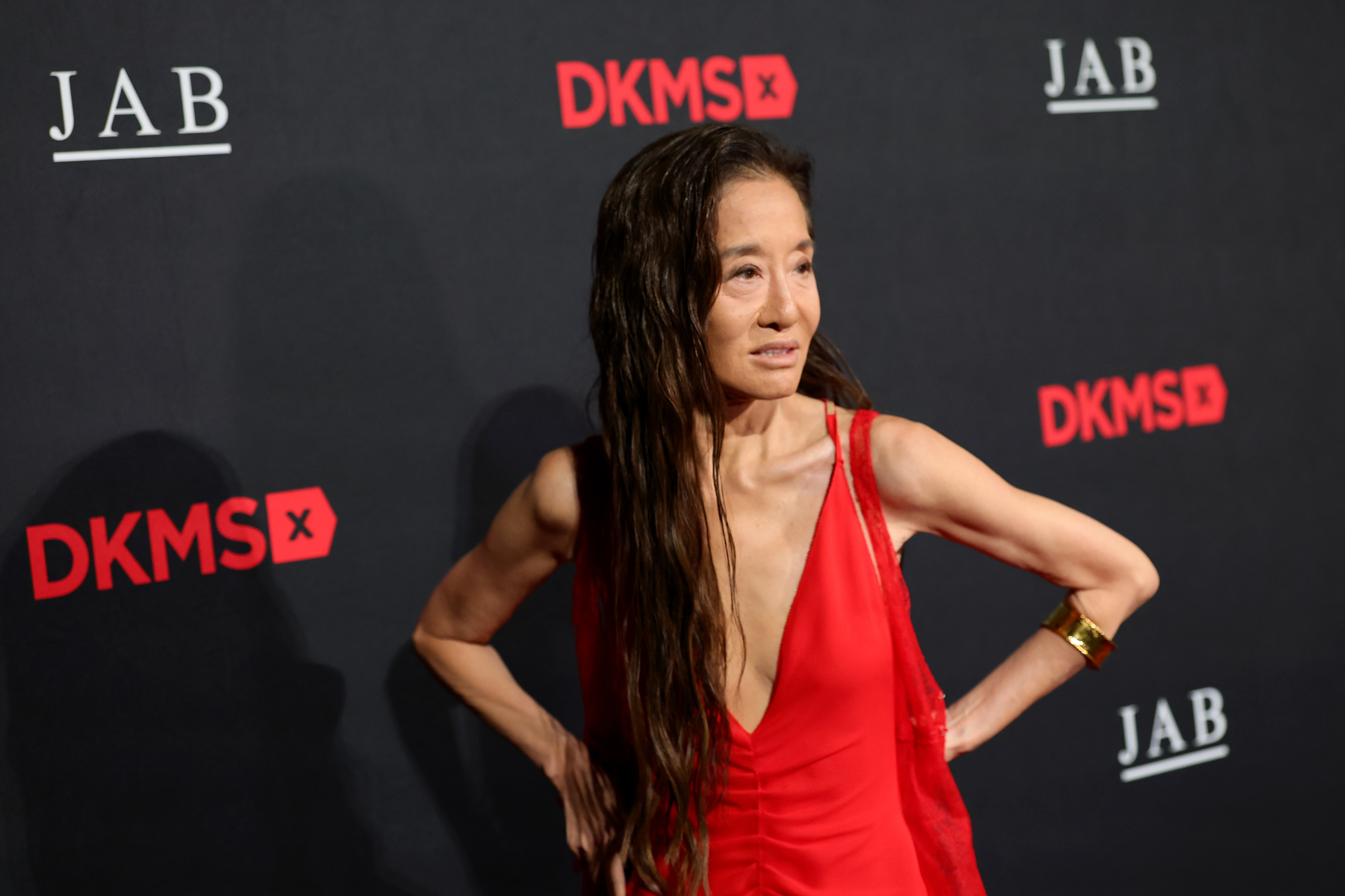 Pentru reuniunea propriu-zisă, Vera Wang a ales o ținută mai simplă, dar la fel de elegantă. Într-o fotografie distribuită pe contul său personal de Instagram, designerul apare alături de o persoană dragă, purtând o rochie maro, mulată, fără mâneci, accesorizată cu pantofi negri cu vârf ascuțit.