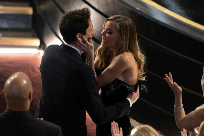 VIDEO. Gest controversat la premiile Oscar 2025. Adrien Brody și-a scos guma din gură și i-a aruncat-o iubitei sale