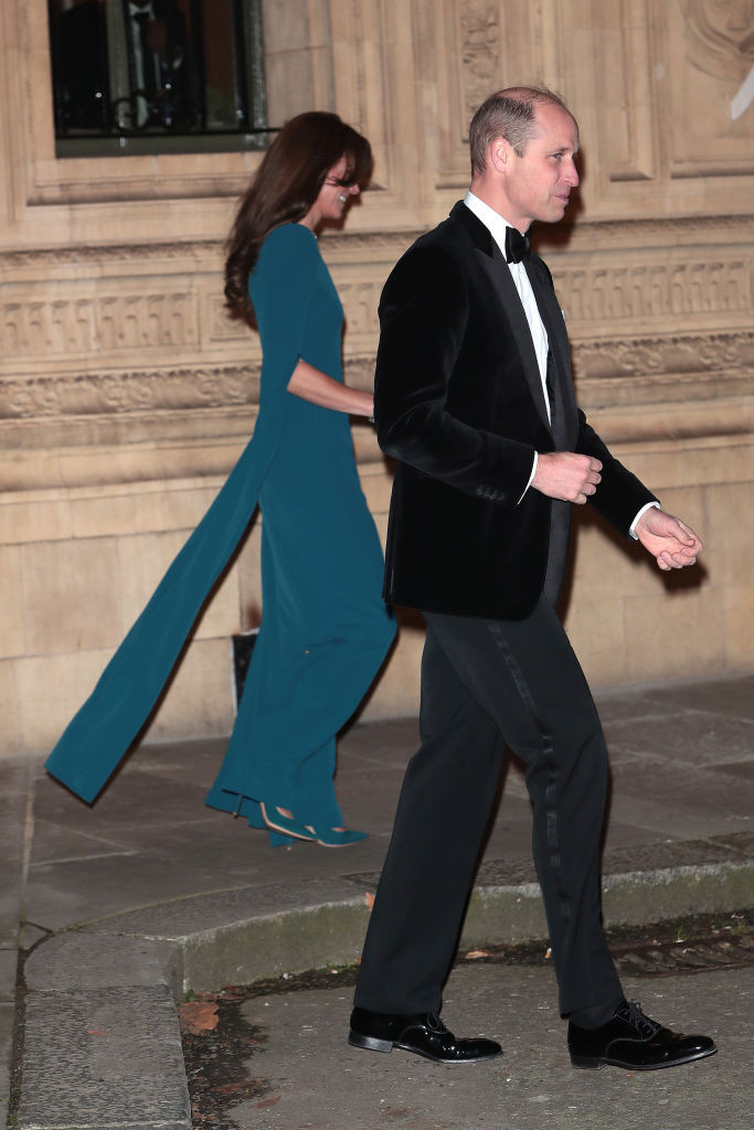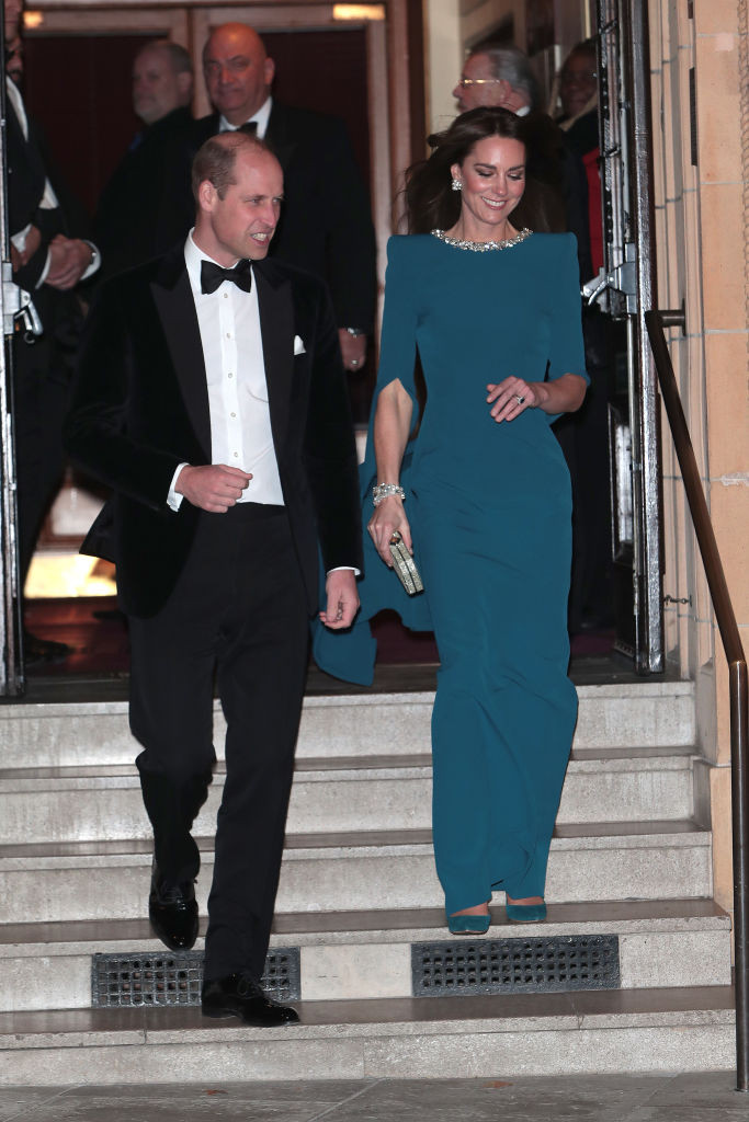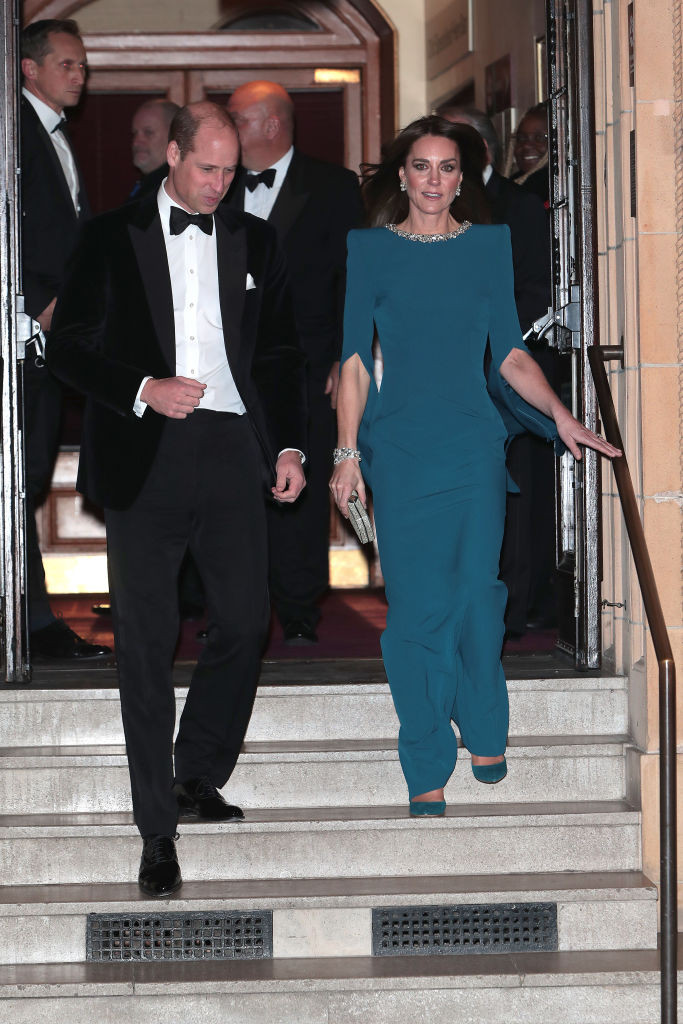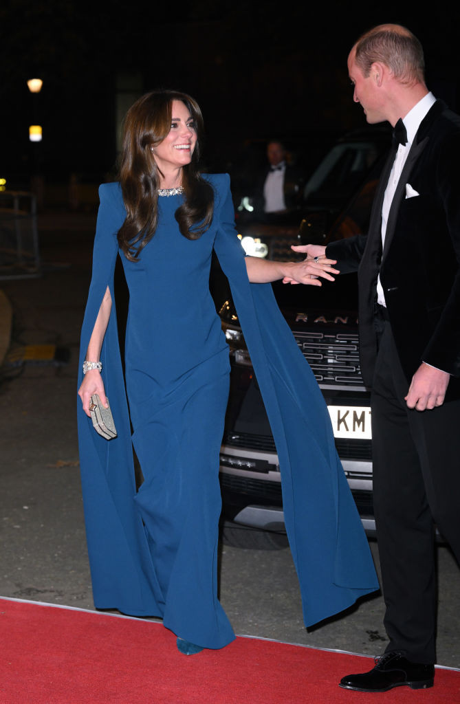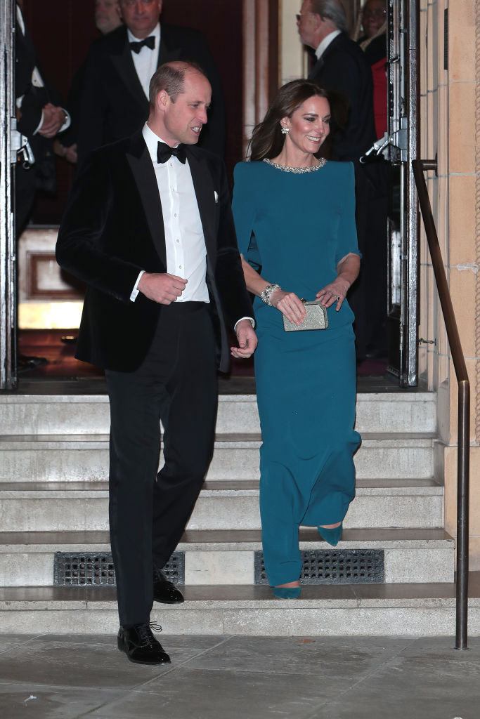 Kate a sosit la evenimentul prestigios îmbrăcată într-o rochie albastră elegantă, în timp ce Wiliiam a optat pentru un costum negru clasic.